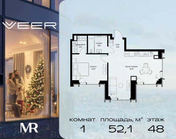 Прямая продажа от застройщика. Продаётся 1-комнатная квартира общей площадью 39.60 м² с предчистовой отделкой в ЖК VEER на 2-м этаже 22 этажного дома. Жилой комплекс бизнес-класса VEER от компании MR — это футуристичный мультиквартал, расположенный в престижной локации на западе Москвы. Благодаря переменной высоте башен — двух 22-этажных, 46-этажной и двух 59-этажных — возникает динамичность в силуэте комплекса, а его яркий образ вносит разноплановость в архитектурный пейзаж района. Расположение и транспортная доступность: • VEER удобно расположен в непосредственной близости от Кутузовского проспекта, обеспечивая быстрый доступ к центральным районам Москвы • Комплекс находится непосредственно напротив самого большого природного заказника в Москве - парка "Долина реки Сетунь", а за семь минут можно доехать до памятника садово-паркового искусства, Троекуровского леса. • Всего в 15 минутах - центр города, самая престижная бизнес-школа управления России "Сколково", дом творчества "Переделкино". • 18 минут пешком до м. "Давыдково" • Открытие новых станций метро в шаговой доступности в будущем Инфраструктура: Разнообразить свой день резиденты VEER смогут также проводя больше времени на свежем воздухе. Двор разделен на 4 зоны разных эмоций и действий, которые пересечены и соединены веерными прогулочными маршрутами: • Спортивная площадка устроена в глубине "Кленовой рощи" • В "Чайном домике" будет создан навес с утеплением для отдыха в любую погоду • Площадки для детей воплотятся в "Волшебный лес" с цветами, зеркалами и световым дизайном • "Центральная площадь" устроена у водного оазиса живописного пруда. Компания MR предлагает своим клиентам специальные условия приобретения квартир в рамках программ ипотечного кредитования от банков-партнеров.