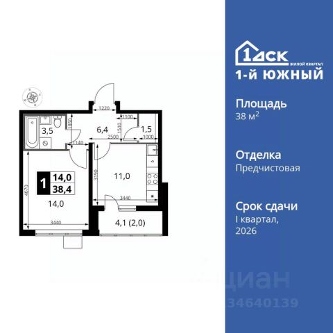 Код объекта: 1995089. Продается 1-комнатная квартира с готовой чистовой отделкой в ЖК "Первый Южный"! Квартира общей площадью 38,4 кв.м. на 14 этаже 25 этажного дома. Проект - ЖК "Первый Южный", Корпус 1.1. Сдача дома - 2 кв. 2026. Качественная квартира с продуманной планировкой: тихая спальня, прихожая с гардеробной зоной, просторная застекленная лоджия, полноценная кухня, функциональный санузел. В квартире выполнена чистовая отделка "Комфорт", здание оснащено системой "Умный дом" (WiFi-реле, беспроводной кран с электроприводом и сенсором протечки, Яндекс-Станция). Жилой комплекс в современном стиле - безбарьерная среда, подъезды с лобби, место для хранения колясок и спортинвентаря. Внутренняя инфраструктура ЖК: 3 детских сада, 2 большие школы, пешеходный бульвар-дендрарий, детские, спортивные и рекреационные зоны, велодорожки. Транспортная доступность: ж/д станция Булатниково (в перспективе будущая МЦД D5) 10-15 минут пешком; удобный выезд на трассу М4 в сторону Москвы и области; удобный выезд на МКАД. О сделке: Продажа по переуступке Один собственник Без обременений Мат. капитал не использовался У Вас есть шанс стать обладателем этой уютной квартиры! Звоните нам прямо сейчас, чтобы узнать больше информации и договориться о просмотре. Мы гарантируем безопасную сделку и юридическую поддержку нашим Клиентам.