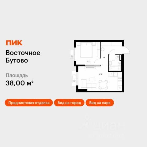 Продаётся 1-комн. квартира площадью 38,5 кв.м на 11 этаже 15 этажного дома (Корпус 48, Секция 3) проекта ПИК Восточное Бутово. Светлый просторный подъезд на уровне земли, функциональная планировка, большие окна, предчистовая отделка. Жилой квартал "Восточное Бутово" расположен в 5 км от МКАД по Симферопольскому шоссе, в Ленинском районе Московской области. Это экологически благоприятное место по соседству с Бутовским лесопарком. В 25 минутах на машине - станции метро и МЦД "Бутово". В "Восточном Бутово" уже открылись пять детских садов из десяти запланированных и одна школа из четырёх. Внутри квартала будет две поликлиники, одна из которых уже работает. В проекте два пешеходных бульвара - по одному из них уже можно гулять и кататься на велосипеде. В закрытых дворах-парках не будет автомобилей - мы построим многоуровневый паркинг, чтобы сделать район ещё более комфортным и безопасным для жителей. Артикул 641749 (Застройщик ООО "Лотан")