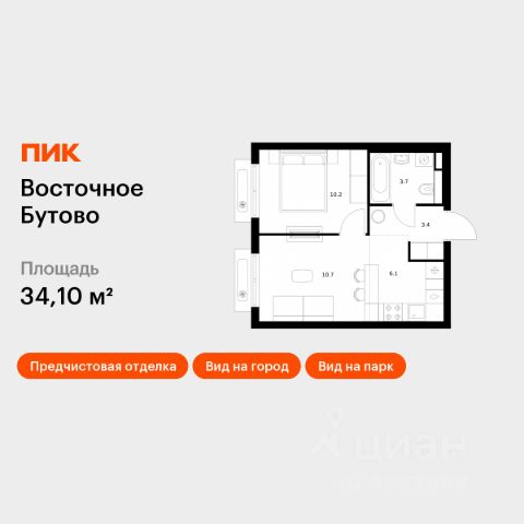 Продаётся 1-комн. квартира площадью 34,1 кв.м на 7 этаже 25 этажного дома (Корпус 48, Секция 4) проекта ПИК Восточное Бутово. Светлый просторный подъезд на уровне земли, функциональная планировка, большие окна, предчистовая отделка. Жилой квартал "Восточное Бутово" расположен в 5 км от МКАД по Симферопольскому шоссе, в Ленинском районе Московской области. Это экологически благоприятное место по соседству с Бутовским лесопарком. В 25 минутах на машине - станции метро и МЦД "Бутово". В "Восточном Бутово" уже открылись пять детских садов из десяти запланированных и одна школа из четырёх. Внутри квартала будет две поликлиники, одна из которых уже работает. В проекте два пешеходных бульвара - по одному из них уже можно гулять и кататься на велосипеде. В закрытых дворах-парках не будет автомобилей - мы построим многоуровневый паркинг, чтобы сделать район ещё более комфортным и безопасным для жителей. Артикул 641666 (Застройщик ООО "Лотан")