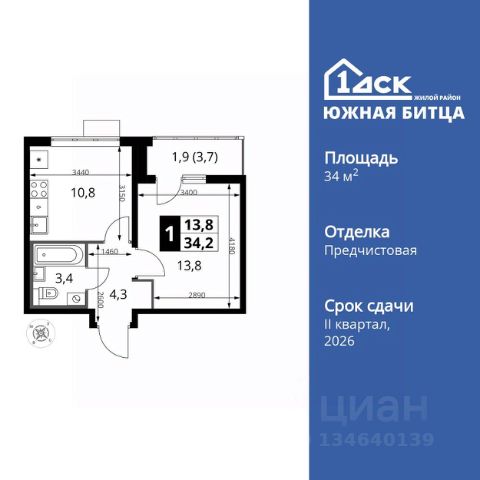 Прямая продажа от застройщика! Семейный жилой район класса Комфорт Плюс Продаётся 1-к квартира номер 126 общей площадью 33.7 кв.м. на 10-м этаже 24 этажного здания. Отделка Whitebox. Цена с учётом скидки. Особенности квартиры: - Линейная планировка - максимальная функциональность и удобство. - Просторная кухня - место для семейных ужинов и кулинарных экспериментов. - Ниша под шкаф - компактное и удобное место для вещей. - Лоджия - уютное место для отдыха и тишины. - Панорамное остекление лоджии - открывает вид на окружающий мир. Квартира с предчистовой отделкой (White box). Вам не придется заниматься черновыми и трудоёмкими работы, а чистовую отделку и дизайн - сделайте на свой вкус. Информация о комплексе: Сочетание свободного перемещения по внутреннней территории без машин и ощущения абсолютной безопасности благодаря надежным ограждениям - вот что отличает ЖК Южная Битца. На территории комплекса созданы все условия как для активного образа жизни, так и для спокойного времяпрепровождения. Свободно перемещайтесь по внутренней территории в безбарьерной среде! Продуманное зонирование во дворах позволяет отделить тихие зоны для родителей со спящими младенцами и тех, кто хочет почитать на свежем воздухе, от шумных игровых зон. Игровые зоны учитывают возраст детей. Площадки для детей старшего возраста вынесены за пределы дворов. Ощущение уютного дома должно начинаться с подъезда. Мы постарались предусмотреть все нюансы, чтобы наши лифты отвечали самым строгим современным требованиям. А наличие кладовых позволит вам поддерживать идеальный порядок и уют в вашей квартире! Транспортная доступность: В 3 км от МКАД в нескольких минутах езды до трех станций метро: Аннино, Бульвар Дмитрия Донского, улица Старокочаловская и станции МЦД2 - жд Бутово. Внутренняя инфраструктура: Для жителей жилого района "Южная Битца" доступна развитая инфраструктура близлежащих московских районов Чертаново, Южное, Бирюлёво Западное, Северное Бутово и Южное Бутово. Множество образовательных учреждений, объекты здравоохранения, торговые и развлекательные центры, кинотеатры, кафе, рестораны, парки.