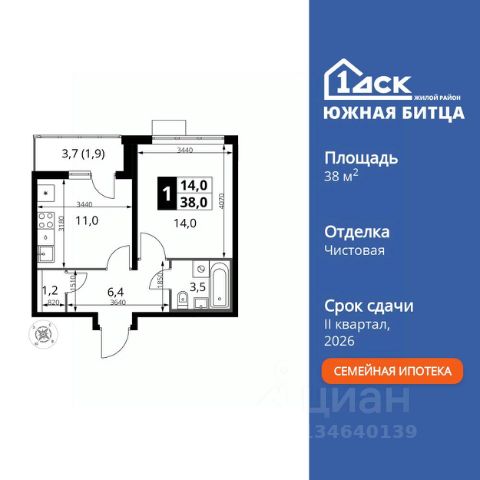 Прямая продажа от застройщика! Семейный жилой район класса Комфорт Плюс Продаётся 1-к квартира номер 699 общей площадью 38 кв.м. на 11-м этаже 22 этажного здания. Отделка Whitebox. Особенности квартиры: - Линейная планировка - максимальная функциональность и удобство. - Просторная кухня - место для семейных ужинов и кулинарных экспериментов. - Гардеробная - удобство для хранения и организации вещей. - Лоджия - уютное место для отдыха и тишины. Квартира с предчистовой отделкой (White box). Вам не придется заниматься черновыми и трудоёмкими работы, а чистовую отделку и дизайн - сделайте на свой вкус. Информация о комплексе: Сочетание свободного перемещения по внутреннней территории без машин и ощущения абсолютной безопасности благодаря надежным ограждениям - вот что отличает ЖК Южная Битца. На территории комплекса созданы все условия как для активного образа жизни, так и для спокойного времяпрепровождения. Свободно перемещайтесь по внутренней территории в безбарьерной среде! Продуманное зонирование во дворах позволяет отделить тихие зоны для родителей со спящими младенцами и тех, кто хочет почитать на свежем воздухе, от шумных игровых зон. Игровые зоны учитывают возраст детей. Площадки для детей старшего возраста вынесены за пределы дворов. Ощущение уютного дома должно начинаться с подъезда. Мы постарались предусмотреть все нюансы, чтобы наши лифты отвечали самым строгим современным требованиям. А наличие кладовых позволит вам поддерживать идеальный порядок и уют в вашей квартире! Транспортная доступность: В 3 км от МКАД в нескольких минутах езды до трех станций метро: Аннино, Бульвар Дмитрия Донского, улица Старокочаловская и станции МЦД2 - жд Бутово. Внутренняя инфраструктура: Для жителей жилого района "Южная Битца" доступна развитая инфраструктура близлежащих московских районов Чертаново, Южное, Бирюлёво Западное, Северное Бутово и Южное Бутово. Множество образовательных учреждений, объекты здравоохранения, торговые и развлекательные центры, кинотеатры, кафе, рестораны, парки.