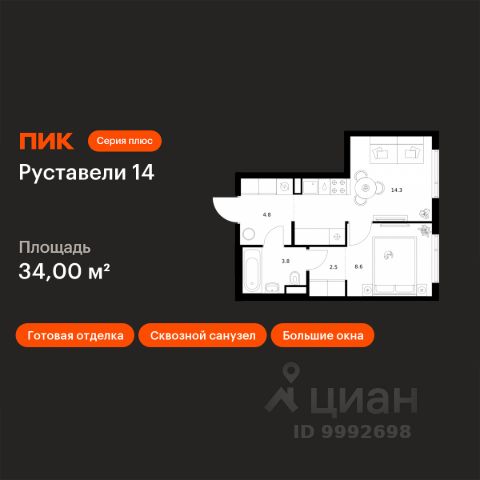 Дом сдан. Ключи в день покупки! В продаже 1-комнатная квартира площадью 40.80 м² с предчистовой отделкой на 8 этаже 49 этажного дома в корпусе Кристалл. ЖК Симфония 34 - концептуально новый жилой комплекс премиум-класса с подземной парковкой, состоит из четырех башен высотой 36 - 54 этажа. Квартиры сдаются с базовой (предчистовой) отделкой MR BASE или дизайнерской чистовой отделкой MR READY. Высота потолков 3 - 6 метров, окна высотой до 2,6 м. Более 100 кладовых в подземной части ЖК и более 500 на этажах. Безопасность - Система контроля входа на территорию комплекса, биометрия - Система автоматического водяного пожаротушения и противопожарного водопровода, система пожарной вентиляции - Доступ на парковку при помощи системы распознавания автомобильных номеров, карточка для контроля доступа резидентов - Система видеонаблюдения - Круглосуточная связь через приложение, телефон, голосовые сообщения с охраной, консьержем, call-центр. Расположение Пешком - 6 минут до метро "Дмитровская" - 15 минут до Тимирязевского парка На машине - 5 минут до Савеловского вокзала и Аэроэкспресса в Шереметьево - 10 минут до Москва-Сити и Садового кольца Благоустройство - 70% территории отведены под зеленые насаждения и ландшафтный дизайн - Приватный Японский сад - Детские площадки с зонированием по возрасту - Clubhouse для резидентов - Wellness & SPA - Зона для пикника, зона с гамаками - Центральное лобби, ресторан, коммерческие помещения - Дополнительный вход/выход на территорию комплекса Окружение - В 10 минутах от Симфония 34 находится дизайн-завод Flacon, где регулярно проходят культурно-образовательные и развлекательные мероприятия - Тимирязевский парк расположен в 850 м. Площадь парка 232 га - Рядом расположен парк "Дубки", площадью 16,5 га. - В 15 минутах расположен Хлебозавод 9. Здесь находятся шоурумы брендов, кафе разных кухонь мира, образовательные проекты и площадки для мероприятий Компания MR предлагает своим клиентам специальные условия приобретения квартир в рамках программ ипотечного кредитования от банков-партнеров. Продам 1-комнатную квартиру в новостройке с отделкой рядом с метро Дмитровская.