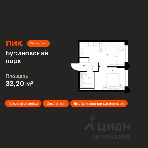 Продаётся 1-комн. квартира площадью 32,7 кв.м на 20 этаже 23 этажного дома (Корпус 2.4, Секция 2) проекта ПИК Бусиновский парк. Светлый просторный подъезд на уровне земли, функциональная планировка, большие окна, c отделкой. "Бусиновский парк" расположен на севере Москвы — в районе Западное Дегунино, в 20 минутах пешком от метро "Ховрино". Яркий и современный образ жилого квартала создают башни-доминанты — у каждой из них свой уникальный фасад, разработанный российскими архитектурными бюро. Проектом предусмотрены входы на уровне земли, без ступеней, порогов и пандусов — так удобнее и безопаснее. У подъездов будет два выхода: на улицу и во двор-парк. В наших дворах мы установим столы и лавочки со встроенными зарядными устройствами. Не нужно будет возвращаться домой, чтобы зарядить смартфон или ноутбук: можно весь день работать на свежем воздухе В проекте появится масштабное пространство площадью 4Га - MultiHub "Атлас". Для юных жителей появится большая игровая площадка с горными хребтами для лазания, ручьём золотоискателей, лесным фортом и песочной зоной для малышей. Дети смогут придумывать здесь бесчисленное количество игр независимо от своего возраста. Взрослые смогут отдохнуть в дождевом саду — это удивительное место, где после дождя появляются маленькие живописные озерца. Для спорта — уличные тренажёры, площадки для командных игр, столы для пинг-понга и шахмат. Владельцы собак оценят место для прогулок с питомцем. А специально для подростков мы спроектировали уникальное пространство для отдыха — памп-трек для катания, большой навес, амфитеатр и сетки для отдыха, где они смогут собираться вместе в любую погоду. В лобби "Бусиновского парка" будет удобная зона ожидания, где можно встретить друзей, курьера или дождаться такси, а также гостевая туалетная комната со столиком для пеленания. На территории проекта предусмотрены двухуровневый подземный и наземный паркинги. В паркингах установлены надёжные системы вентиляции, пожаротушения и круглосуточного видеонаблюдения. А ещё для наших паркингов мы разработали систему навигации, которая помогает быстро найти автомобиль. На подземных этажах "Бусиновского парка" предусмотрены вместительные кладовые. В них жители проекта смогут хранить сезонные и габаритные вещи, которые занимают много места в квартире. В корпусе 1.4 появится общественная терраса на 30-м этаже. Доступ сюда есть только у жителей, поэтому вы не встретите в этом пространстве посторонних людей. Здесь можно заниматься спортом, отдохнуть за чтением книги или создать собственный сад. А ещё отсюда открываются красивые виды на город. В "Бусиновском парке" предусмотрены квартиры с панорамным остеклением, различными балконами, эркерами, угловыми окнами и большим количеством окон — до пяти в одной комнате. В таких квартирах широкий угол обзора: можно пить кофе, наблюдая за жизнью на улице и наслаждаясь ощущением простора. Ещё больше комфорта придаст мягкий солнечный свет, который равномерно осветит всю квартиру. Артикул 965812 (Заст Купить 1-комнатную квартиру в новостройке с отделкой рядом с метро Ховрино.