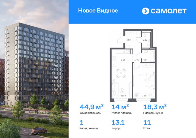Продаётся 1-комнатная квартира в строящемся доме (Корпус 17), срок сдачи: II-кв. 2026, общей площадью 29.8 кв.м., на 4 этаже. Расположение, транспортная доступность