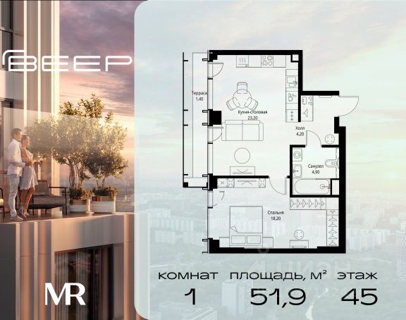 Прямая продажа от застройщика. Продаётся 1-комнатная квартира общей площадью 43.30 м² с предчистовой отделкой в ЖК Веер на 55-м этаже 59 этажного дома. Жилой комплекс бизнес-класса Веер от компании MR — это футуристичный мультиквартал, расположенный в престижной локации на западе Москвы. Благодаря переменной высоте башен — двух 22-этажных, 46-этажной и двух 59-этажных — возникает динамичность в силуэте комплекса, а его яркий образ вносит разноплановость в архитектурный пейзаж района. Расположение и транспортная доступность: • Веер удобно расположен в непосредственной близости от Кутузовского проспекта, обеспечивая быстрый доступ к центральным районам Москвы • Комплекс находится непосредственно напротив самого большого природного заказника в Москве - парка "Долина реки Сетунь", а за семь минут можно доехать до памятника садово-паркового искусства, Троекуровского леса. • Всего в 15 минутах - центр города, самая престижная бизнес-школа управления России "Сколково", дом творчества "Переделкино". Инфраструктура: Разнообразить свой день резиденты Веер смогут также проводя больше времени на свежем воздухе. Двор разделен на 4 зоны разных эмоций и действий, которые пересечены и соединены веерными прогулочными маршрутами: • Спортивная площадка устроена в глубине "Кленовой рощи" • В "Чайном домике" будет создан навес с утеплением для отдыха в любую погоду • Площадки для детей воплотятся в "Волшебный лес" с цветами, зеркалами и световым дизайном • "Центральная площадь" устроена у водного оазиса живописного пруда. Компания MR предлагает своим клиентам специальные условия приобретения квартир в рамках программ ипотечного кредитования от банков-партнеров. Продам 1-комнатную квартиру в новостройке с отделкой рядом с метро Кунцевская.