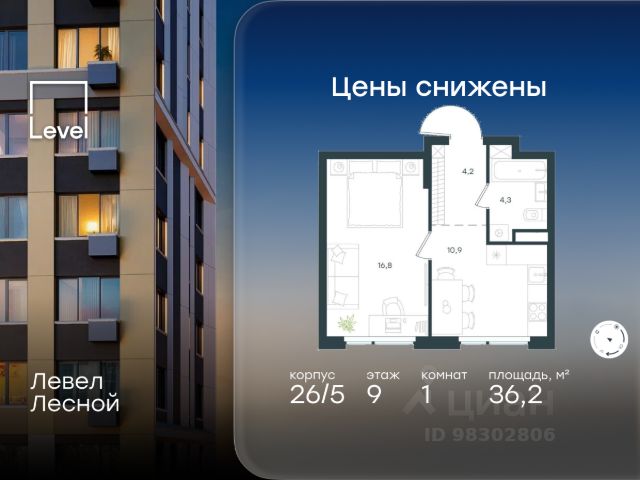 Цена указана с учётом скидки при 100%-й оплате, несубсидированной ипотеке, рассрочке (кроме программы "Рассрочка 0%"). В районе, утопающем в густой зелени лесов, многочисленных парков и скверов, продаётся 1-комнатная квартира площадью 37.60 кв.м с предчистовой отделкой. Квартира расположена на 10 этаже в жилом комплексе комфорт-класса Левел Лесной (компания Level Group/Левел групп). Отличная транспортная доступность: - 25 мин. пешком до станции метро "Пятницкое шоссе"; - 28 мин. на автобусе до станции метро и МЦД-2 "Волоколамская"; - 11 мин. на авто до МКАД; - 25 мин. на авто до ТТК. Продуманный архитектурный проект: - Концепция проекта Левел Лесной от бюро СПИЧ; - Высотность комплекса до 15 этажей с уникальными видами на лесные массивы и город; - Высота потолков до 3 м; - Современные окна высотой до 1,6 м, в части квартир предусмотрены окна в пол. Высота подоконников 0,6 м; Расположение: Жилой комплекс Левел Лесной строится в зелёной зоне ближайшего Подмосковья, г.о. Красногорск в посёлке Отрадное. Шаговая и автомобильная доступность до метро и больших транспортных артерий города. За 25 минут вы дойдёте до станции метро "Пятницкое шоссе", а за 20 минут на машине сможете доехать до станции метро "Тушинская". Район окружен роскошной зеленью лесов и парковых зон, занимающих территорию свыше 1 000 гектаров. Помимо благоприятной экологии, здесь множество возможностей для активного отдыха и поддержания физической формы. Облагороженная территории с полностью развитой инфраструктурой. На территории проекта находится детский сад и школа "Светлые Горы", которая входит в список лучших частных школ от Forbes Education (по данным на 2023г.). Кроме того, в пешей доступности расположено ещё 8 детских садов, а также запланировано открытие современной муниципальной школы. В непосредственной близости находятся сетевые супермаркеты и локальные магазины, аптеки, клиники, почта, библиотека, салоны красоты, рестораны, спортивные и творческие секции, развивающие детские центры. В 12 минутах пешком расположен торговый парк "Отрада" с продуктовым и строительным гипермаркетами, магазинами, кинотеатром и развлечениями для детей. Внутренняя инфраструктура: Мы знаем, как важно, чтобы магазины и сервисы были всегда рядом. В сданных корпусах жилого комплекса Левел Лесной уже расположена полностью готовая развитая инфраструктура. На первых этажах корпуса 27 предусмотрено ещё 14 коммерческих помещений. Благоустройство: Продуманное пространство и аура приватного европейского городка рождают чувство лёгкости и расслабления у каждого, кто попадает на территорию проекта. Концепцию общественных площадок разработали в партнёрстве два архитектурных бюро: "Хайлайт Архитектура" (Highlight Architecture) и "Скейп" (Scape). В безопасных дворах без машин каждый обязательно найдёт себе место для вдохновения, отдыха и спорта.