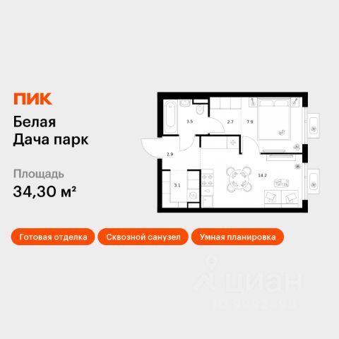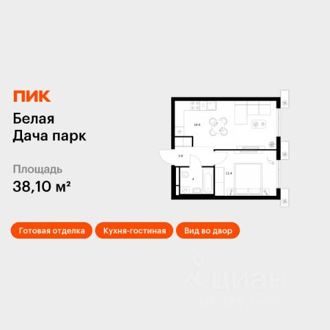 Продаётся 1-комн. квартира площадью 38,3 кв.м на 9 этаже 12 этажного дома (Корпус 22.1, Секция 2) проекта ПИК Белая Дача парк. Светлый просторный подъезд на уровне земли, функциональная планировка, большие окна, c отделкой. "Белая Дача парк" — новый проект в Московской области, в городе Котельники. Квартал расположен в 2 километрах от МКАД и в 7 минутах на автомобиле от метро "Котельники". Уже сейчас вы можете приобрести квартиры с отделкой в готовых и строящихся корпусах. На территории квартала будут построены 22 дома, две школы, поликлиники и пять детских садов. Один из центральных элементов проекта — широкий пешеходный бульвар, где мы создали пространства для спорта, прогулок и отдыха. Яркой точкой притяжения стал ПлейХаб "Ферма" — масштабная игровая зона с домом-мельницей, искусственным ручьём и развивающими элементами для детей. В 2024 году ПлейХаб стал победителем "Всероссийской премии лучших проектов создания игровой среды" и получил награду "Лучшая реализация игровой площадки среди девелоперских проектов". Рядом с кварталом много магазинов и развлекательных центров: "МЕГА Белая дача" и гипермаркет "Глобус". До Люберецких карьеров можно добраться на машине за 9 минут, а до парка "Кузьминки" — за полчаса. Артикул 1055488 (Застройщик АО "СЗ "Новый Горизонт")