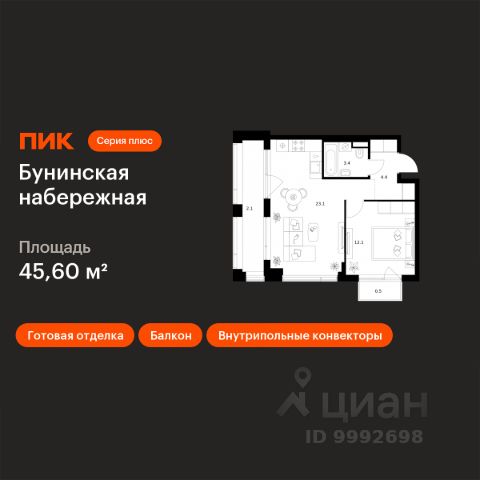 В жилом комплексе, расположенном по соседству с ландшафтным парком "Южное Бутово", продается 1-комнатная квартира площадью 39.70 кв. м. с отделкой. Квартира расположена на 22 этаже 2 корпуса в жилом квартале комфорт-класса "Новые Смыслы" (ГК Unikey/Юникей).