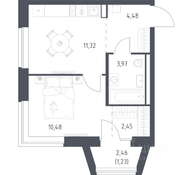 • ✅ Минимальная площадь: 28,7 м²