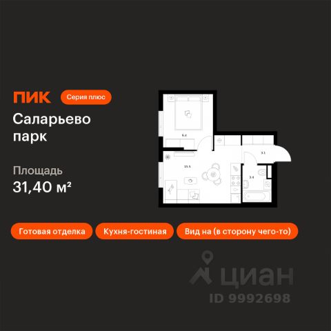 Продаётся 1-комн. квартира площадью 34,1 кв.м на 16 этаже 17 этажного дома (Корпус 20, Секция 1) проекта ПИК Саларьево парк. Светлый просторный подъезд на уровне земли, функциональная планировка, большие окна, c отделкой. Жилой район "Саларьево парк" расположен в Новой Москве, в четырёх километрах от МКАД по Киевскому шоссе. Две станции метро: "Саларьево" и "Филатов луг", — находятся в пешей доступности от проекта. Дойти до них можно за 510 минут. В квартале уже создана качественная среда, где есть абсолютно всё для полноценной жизни, работы и отдыха. Благодаря удобному расположению проекта всё важное будет рядом: детские сады, школы, кафе и рестораны, шопинг в торговых центрах, фитнес и даже аэропорт. Все корпуса в квартале гармонично сочетаются, образуя единую городскую среду. Между собой их объединяет невысокая этажность и натуральная цветовая гамма. Здесь приятно гулять и проводить время на улице всей семьёй. В "Саларьево парке" создана уникальная образовательная среда, включающая в себя шесть школ, рассчитанных на 6 250 учеников. Две из них уже открыты, их посещает 2 300 детей. Также на территории "Саларьево парка" находится 12 детских садов, один из которых с бассейном. Сейчас уже открыты 7 садов. В "Саларьево парке" открыта уникальная игровая площадка — PlayHub "Оригами". Здесь есть ручей, горка-труба и рельефные холмы. Взрослые смогут отдохнуть в уютном кафе, пока дети играют. Также на территории проекта есть SportHub — большая спортивная зона, разделённая по интересам и возрастам. Здесь можно заниматься разными видами спорта: футболом, баскетболом, волейболом и стритболом. Зимой центральную часть площадки превращают в каток. Во дворах-парках жилого квартала есть места для отдыха, детские и спортивные площадки. На первых этажах домов расположены магазины, кафе и полезные сервисы. Также вблизи проекта есть несколько масштабных торговых центров. До ТЦ "Саларис" пять минут пешком, до "Рио", Metro Cash & Carry и "Леруа Мерлен" — пять минут на автомобиле. Артикул 946811 (Застройщик ООО "Специализированный Застройщик "Тирон") Продается 1-комнатная квартира в новостройке с отделкой рядом с метро Румянцево.