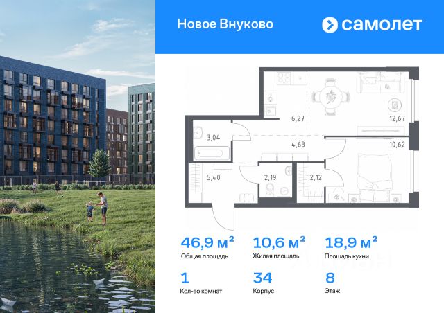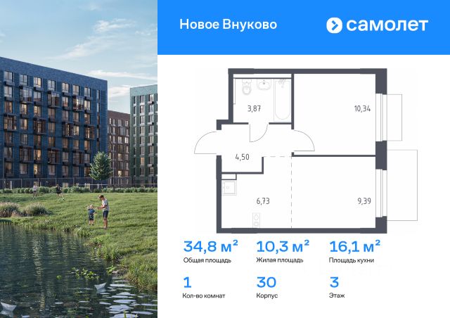 Строим кварталы для жизни с заботой о будущем. Предлагается 1-комнатная квартира комфорт-класса 38,93 кв.м в корпусе 28 на 3 этаже, в ЖК "Новое Внуково" Квартира с предчистовой отделкой. Доступность дополнительных опций уточняйте у застройщика. Приобрести квартиру возможно по специальным акциям от застройщика, с текущими условиями акций можно ознакомиться в блоке "Акций". Цена динамическая и может отличаться, уточняйте актуальность у застройщика. "Новое Внуково" — это жилой комплекс в Новой Москве, у подножия берега реки Незнайка. Поблизости — живописные места для прогулок: народный парк "Ручеек", усадьба Старо-Никольское, Валуевский и Ульяновский лесопарки. Часть домов сдана и внутри района уже открыт детсад с бассейном, а в ближайшее время откроются еще 3 детсада, 2 школы и поликлиника. На территории проекта будет построен первый в России Центр Российской Федерации Баскетбола, где будут площадки с трибунами, тренажерный зал, кафе и конференц-зал. Дворы-парки закрыты от машин и посторонних. На территории — прогулочный маршрут вдоль реки Незнайка и набережная с шезлонгами и качелями для отдыха. Также здесь появится плейхаб "Незнайка на Луне", площадь для мероприятий с сухим фонтаном, летним кинотеатром и кафе. В жилом комплексе — монолитные дома высотой от 6 до 14 этажей. Фасады облицованы кирпичом природных оттенков.