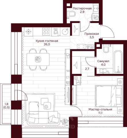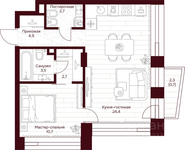 Цена указана с учётом скидки при 100%-й оплате, несубсидированной ипотеке, рассрочке (кроме программы "Рассрочка 0%").