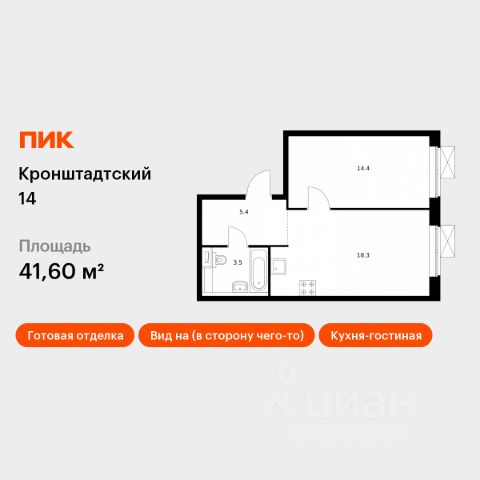Продаётся 1-комн. квартира площадью 40,3 кв.м на 7 этаже 12 этажного дома (Корпус 1.1.2, Секция 2) проекта ПИК Кронштадтский 9. Светлый просторный подъезд на уровне земли, функциональная планировка, большие окна, предчистовая отделка.