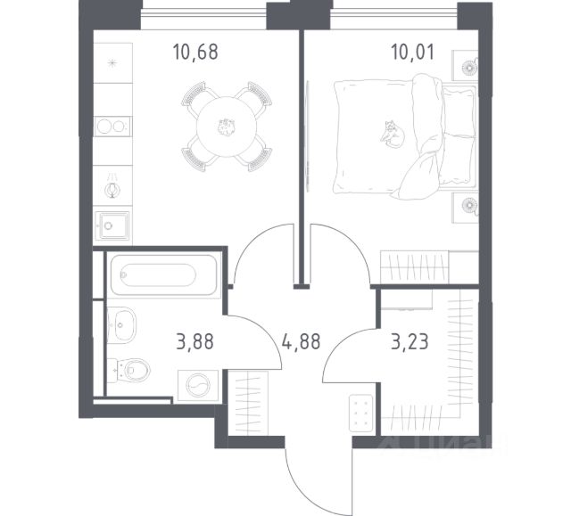 Прямая продажа от застройщика! Жилой Комплекс класса Комфорт Плюс. Продаётся 1-к квартира номер 31 общей площадью 33.9 кв.м. на 4-м этаже 24 этажного здания. Чистовая отделка. Особенности квартиры: - МЦД-5 в пешей доступности - Квартал с собственной набережной - Свои 2 детских сада и школа - Мастер-зона с гардеробной. Просторное место для отдыха и удобного хранения вещей. - Линейная планировка - максимальная функциональность и удобство. - Гардеробная - удобство для хранения и организации вещей. - Лоджия - уютное место для отдыха и тишины. Информация о комплексе: Комплекс 1-й Донской расположен в 7 км от МКАД по трассе М-4 Дон. В нем сочетаются все плюсы комфортной городской среды и природного окружения. В проекте достаточно большой процент квартир, выходящих на 2-3 стороны света. Секции-маяки формируют у зданий визуальную L-форму, что придает застройке структуру и ритмику объемов. На ощущение динамики работает и разная этажность зданий. Теплая цветовая палитра фасадов отражает природу Дона. Вечерами дома преображаются благодаря архитектурной подсветке, выгодно выделяясь на городском фоне. Природа оказывает положительное влияние на человека на всех уровнях восприятия: через зрение, запахи, звуки, тактильные ощущения. Неподалеку от ЖК Первый Донской: Ермолинский парк, Видновский лесопарк, Жуковский парк Транспортная доступность: Комплекс удобно расположен в 7 км от МКАД по трассе М-4 Дон (через Видное). Расстояние до Каширского шоссе составляет 12 км. Добраться до метро и центра Москвы позволяет развитая сеть маршрутов общественного наземного транспорта. Действующая ж/д станция Калинина Павелецкого направления в 15-17 минутах ходьбы (МЦД-5 в 2025-2026 гг). Внутренняя инфраструктура: Проект 1-й Донской соседствует с бурно развивающимся районом, основная инфраструктура которого уже сложилась. В строительстве современных жилых комплексов в округе есть свои плюсы: здесь формируется продуманная и комфортная городская среда. Что касается внутренней инфраструктуры, на территории квартала будут расположены собственные муниципальные 2 детских садика и школа, которые помогут совместить приятное с полезным. Территория комплекса пронизана целой сетью живописных пешеходных маршрутов, позволяющих попасть в любой уголок района. Основные пути, как водится, "торговые". Они проходят вдоль магазинов, кафе и других представителей коммерции и отделяются от проезжей части зеленой "фито" - стеной. Среди крупных социальных объектов предусмотрены своя поликлиника и торговый центр с примыкающей площадью для общественных мероприятий. Уют начинается с продуманного подъезда. Сквозные подъезды наполнены светом благодаря сплошному остеклению. Вход в них есть и с улицы, и со двора. 1-комнатная квартира в новостройке с отделкой рядом с метро Зябликово.