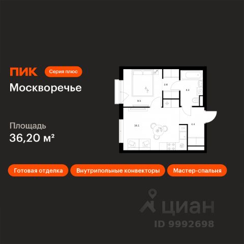 В районе Москворечье-Сабурово продается 1-комнатная квартира площадью 43.41 м². Она расположена на 13 этаже в 261 корпусе нового жилого квартала Лайф Варшавская. Площадь комнат: гостиная — 11,93 м² спальня — 12,66 м² кухня — 5,84 м² ванная — 4,06 м² В Лайф Варшавская мы создали идеальные условия для жизни молодых людей и семей с детьми, тинейджеров и спортсменов, домохозяек и бизнесменов. Жилой квартал Лайф Варшавская удачно расположен: 5 минут до станции "Варшавская" 10 минут до станции "Каширская" 18-25 минут до парка-усадьбы "Коломенское", Битцевского леса и музея-заповедника "Царицыно" Богатая инфраструктура — это визитная карточка проекта. На территории работают детский сад на 160 мест и школа на 900 мест с IT-полигоном и мультифункциональным спортивным стадионом. В квартале разместились пешеходный бульвар, игровой плейхаб "Змейка", спортивный кластер с полями для футбола и волейбола, площадка для выгула животных. На первых этажах жилых домов открыты магазины, кафе и рестораны, салоны красоты, арт-галереи, сервисы бытовых услуг, медицинские центры. Концепция жилого квартала создана ведущими архитектурными бюро. Структуры малоэтажных кварталов дополняются высотными башнями-доминантами. Такой тип застройки позволил сформировать освещенную приватную территорию. Продам 1-комнатную квартиру в новостройке с отделкой в районе Москворечье-Сабурово в Москве.