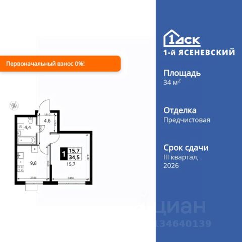 Прямая продажа от застройщика! Жилой Комплекс класса Комфорт Плюс. Продаётся 1-к квартира номер 9 общей площадью 35.7 кв.м. на 2-м этаже 8 этажного здания. Отделка Whitebox. Цена с учётом скидки. Особенности квартиры: - Квартиры рядом с метро - м. Корниловская 9 мин пешком - 63 га лесопарка за окнами - Школа c it-кластером и бассейном. 2 детских сада - Линейная планировка - максимальная функциональность и удобство. - Можно оборудовать рабочее место - комфорт для работы и учёбы. - Ниша под шкаф - компактное и удобное место для вещей. - Лоджия - уютное место для отдыха и тишины. Квартира с предчистовой отделкой (White box). Вам не придется заниматься черновыми и трудоёмкими работы, а чистовую отделку и дизайн - сделайте на свой вкус. Информация о комплексе: В жилом комплексе комфорт-плюс класса "1-го Ясеневского" доступны преимущества двух стилей жизни. Ведь в пешей доступности метро, школа с 25-метровым бассейном и IT-кластером и при этом целых 63 га благоустроенного Троицкого лесопарка под окнами, где так приятно дышать свежим воздухом и слушать пение птиц. Собственная закрытая территория "1-го Ясеневского" представляет собой уютный оазис. Здесь и зеленый освещенный бульвар для прогулок, система велодорожек, маленькая городская площадь, кафе, пекарни и кофе поинты. А еще дворы без машин и многоэтажная парковка. Изюминка территории - фруктовые деревья во дворах и городские сады. "1-й Ясеневский" - всего в 1 км от МКАД, на территории новой Москвы. Жилой комплекс, где есть все необходимое для современного человека. Транспортная доступность: До метро "Корниловская" - 12 минут пешком До метро "Тютчевская" - 25 минут пешком До метро "Теплый стан" - 10 минут на транспорте До метро "Ольховая" - 30 минут на общественном транспорте Личный автотранспорт: Выезд на Калужское шоссе - 500 м МКАД - 1 км Внутренняя инфраструктура: ЖК "1-й Ясеневский" можно назвать идеальным местом для жизни семьи с детьми. Здесь буквально за домом находится Троицкий лесопарк - излюбленное место прогулок молодых родителей. А во внутренних дворах под детские площадки выделены специальные зоны. Они оборудованы всем, что нужно для счастливого детства: современными и максимально безопасными качелями, песочницами и лазалками. Оборудование и игровые сценарии на детских площадках спроектированы вместе с командой детских психологов для правильного развития ребенка и для повышения их интереса. Также рядом с домом два детских садика, один из которых уже построен и школа на 1100 мест. Школу по праву можно назвать образцовым учебным заведением. В ней закладываются основы успешного будущего. Здесь есть класс робототехники, IT-кластер, 25-метровый бассейн и прекрасно оборудованные спортзалы.