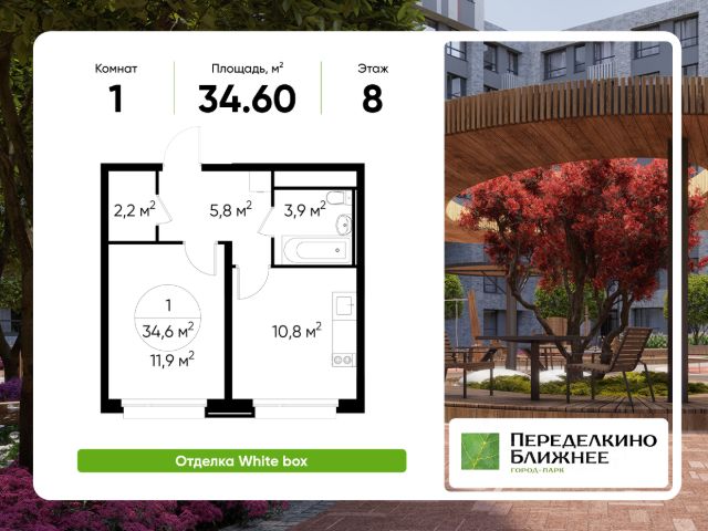 Продается 1-комн. квартира, с отделкой в ЖК "Новые Ватутинки. Квартал у реки".