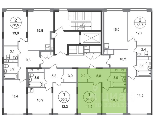 Общая площадь: 38.4 кв.м., жилая: 15.9 кв.м., площадь кухни: 9.2 кв.м. Этаж: 14.