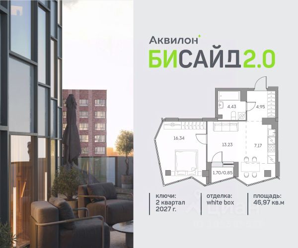 Продажа от застройщика. Продается уютная однокомнатная квартира на 15 этаже современного жилого комплекса Бисайд 2.0. Вид из окон: во двор. Срок сдачи: 2 кв. 2027 г. Квартира с лоджией. Отделка WhiteBox: - Вам не придется заниматься черновыми работами. - Возможность реализовать любой дизайн-проект. Расположение: В Бисайд 2.0 все необходимое - в шаговой доступности, не нужно тратить много времени на дорогу до работы, школы и поликлиники, походы в магазины и кинотеатры. Квартал расположен на пересечении ключевых транспортных магистралей Москвы, что позволяет быстро и легко добраться до любой нужной локации. Выбирайте наиболее подходящее занятие или попробуйте все! - Спортивные центры - Ретейл на первых этажах - Событийная площадь с амфитеатром - Дворовые площадки для активностей Транспортная доступность: - 5 минут на машине до ТТК - 7 минут на машине до Садового кольца - 7 минут пешком до станции "Нижегородская Внутренняя инфраструктура Бисайд 2.0: - Своя школа на 825 учеников - Просторное и светлое гранд-лобби - Коворкинг на открытом воздухе - Детский клуб Akvilon Kids - Подземный паркинг - Колясочные и велосипедные - Сити-боксы для хранения - Профессиональная управляющая компания Преимущества: - Технология энергоэффективности Termo-S, снижающая теплопотерю домов и позволяющую экономить на электроснабжении - Soundstop - технология дополнительной шумоизоляции на 39 дБ в квартирах с WhiteBox и чистовой отделкой - Система умного дома inHome 3.0 позволит контролировать коммунальные расходы, оплачивать счета и пользоваться услугами, не выходя из умного дома - Vent-In - система циркуляции воздуха в каждой комнате Купить 1-комнатную квартиру в новостройке с отделкой в районе Нижегородский в Москве.