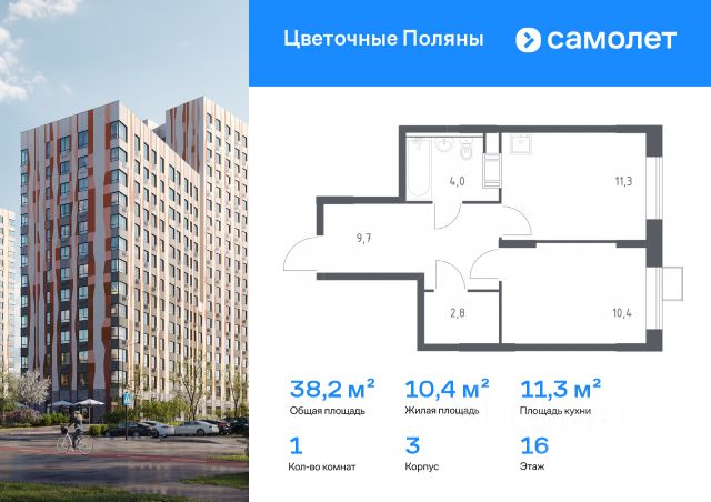 Строим кварталы для жизни с заботой о будущем. Предлагается 1-комнатная квартира комфорт-класса 40,2 кв.м в корпусе 3 на 12 этаже, в ЖК "Цветочные Поляны" Квартира с чистовой отделкой. Доступность дополнительных опций уточняйте у застройщика. Приобрести квартиру возможно по специальным акциям от застройщика, с текущими условиями акций можно ознакомиться в блоке "Акций". Цена динамическая и может отличаться, уточняйте актуальность у застройщика. "Цветочные Поляны" — жилой комплекс в Новой Москве, рядом с Валуевским и Ульяновским лесопарками. В квартале есть лесопарковая зона площадью 5 гектаров, где можно заниматься спортом, кататься на велосипеде и просто гулять среди деревьев. Также в пешей доступности — Валуевский лесопарк, дойти до которого можно вдоль "берега" декоративного сухого ручья. Те, кто любит отдых у воды, всегда могут прогуляться до реки Незнайки. В "Цветочных Полянах" предусмотрена образовательная инфраструктура для семей с детьми: уже построены первая школа и детский сад, в планах — строительство еще двух детских садов и второй школы. В квартале уже работают супермаркеты, кафе, салоны красоты, а в будущем появится свой торговый центр. Дома высотой до 22 этажей построены по монолитной технологии. Рисунок на фасадах отсылает к традиционному искусству Староселья — плетению кружев из стекляруса.