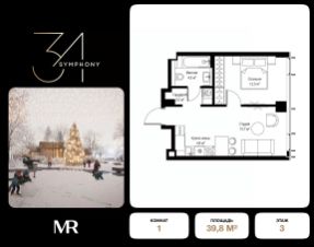 Дом сдан. Ключи в день покупки! В продаже 1-комнатная квартира площадью 41.10 м² с предчистовой отделкой на 12 этаже 49 этажного дома в корпусе Кристал. ЖК Симфония 34 - концептуально новый жилой комплекс премиум-класса с подземной парковкой, состоит из четырех башен высотой 36 - 54 этажа. Квартиры сдаются с базовой (предчистовой) отделкой MR BASE или дизайнерской чистовой отделкой MR READY. Высота потолков 3 - 6 метров, окна высотой до 2,6 м. Более 100 кладовых в подземной части ЖК и более 500 на этажах. Безопасность - Система контроля входа на территорию комплекса, биометрия - Система автоматического водяного пожаротушения и противопожарного водопровода, система пожарной вентиляции - Доступ на парковку при помощи системы распознавания автомобильных номеров, карточка для контроля доступа резидентов - Система видеонаблюдения - Круглосуточная связь через приложение, телефон, голосовые сообщения с охраной, консьержем, call-центр. Расположение Пешком - 6 минут до метро "Дмитровская" - 15 минут до Тимирязевского парка На машине - 5 минут до Савеловского вокзала и Аэроэкспресса в Шереметьево - 10 минут до Москва-Сити и Садового кольца Благоустройство - 70% территории отведены под зеленые насаждения и ландшафтный дизайн - Приватный Японский сад - Детские площадки с зонированием по возрасту - Clubhouse для резидентов - Wellness & SPA - Зона для пикника, зона с гамаками - Центральное лобби, ресторан, коммерческие помещения - Дополнительный вход/выход на территорию комплекса Окружение - В 10 минутах от Symphony 34 находится дизайн-завод Flacon, где регулярно проходят культурно-образовательные и развлекательные мероприятия - Тимирязевский парк расположен в 850 м. Площадь парка 232 га - Рядом расположен парк "Дубки", площадью 16,5 га. - В 15 минутах расположен Хлебозавод 9. Здесь находятся шоурумы брендов, кафе разных кухонь мира, образовательные проекты и площадки для мероприятиКомпания MR предлагает своим клиентам специальные условия приобретения квартир в рамках программ ипотечного кредитования от банков-партнеров. Продам 1-комнатную квартиру в новостройке с отделкой в округе САО в Москве.