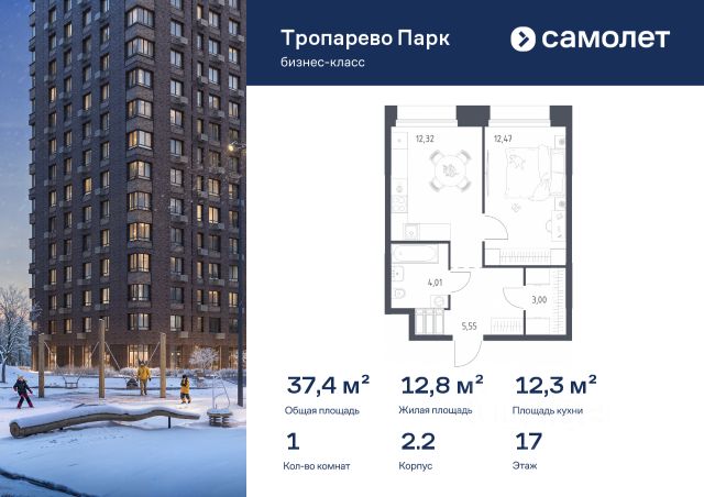 Строим кварталы для жизни с заботой о будущем. Предлагаются 1-комнатные апартаменты бизнес-класса 34,63 кв.м в корпусе 2.2 на 4 этаже, в МФК "Тропарево Парк" Апартаменты с чистовой отделкой. Доступность дополнительных опций уточняйте у застройщика. Прописка не предусмотрена в рамках юридического статуса - апартаменты. Приобрести апартаменты возможно по специальным акциям от застройщика, с текущими условиями акций можно ознакомиться в блоке "Акций". Цена динамическая и может отличаться, уточняйте актуальность у застройщика. "Тропарево Парк" — комплекс апартаментов бизнес-класса рядом с Ленинским проспектом, в Новой Москве. Находится всего в 10 минутах пешком от станции метро "Румянцево". Включает 7 жилых корпусов высотой от 16 до 23 этажей, приватные дворы-сады, обширную зеленую территорию с общественными пространствами. Из части апартаментов открываются виды на Тропаревский лесопарк, расположенный рядом.