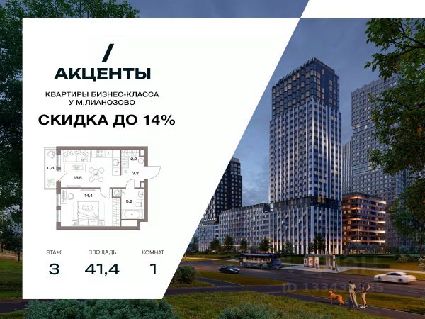 Однокомнатная квартира для молодой пары или начинающего специалиста. -Кухня-гостиная с зонированной кухней и пространством для отдыха -В квартире предусмотрено классическое остекление -Приватная изолированная спальня с зоной гардеробной и возможностью организации рабочего места. Жилой комплекс "Акценты" — это монолитный проект бизнес-лайт класса, расположенный в северной части Москвы, в районе Восточное Дегунино. Комплекс объединяет 19 жилых корпусов высотой от 7 до 30 этажей, возводимых на территории 11,7 гектара. В рамках проекта предусмотрены квартиры различной площади — от компактных студий до просторных трехкомнатных решений, с высотой потолков 2,85 м и вариантами отделки, включая чистовую отделку. Благодаря архитектуре бюро АПЕКС и панорамному остеклению, помещения наполняются естественным светом. Удачное расположение рядом с метро "Лианозово" и МЦД делает комплекс удобным как для жизни, так и для инвестиций. Комфорт и безопасность Каждый корпус оборудован современными лифтами с выходом на все этажи, включая подземный паркинг. Входные группы спроектированы с учетом принципов безбарьерной среды: предусмотрены места для колясок и велосипедов. В лобби вас будут ждать уютное пространство с зоной для кофе, стеллажами для обмена книгами и мягкой зоной ожидания такси или курьера. Для автомобилистов организован двухуровневый подземный паркинг на 494 машиномест, с системой распознавания номеров и станцией подкачки шин. Вся территория комплекса закрыта и охраняется: контроль доступа и система видеонаблюдения обеспечивают безопасность жителей. Отдельное внимание уделено цифровой инфраструктуре — проект поддерживает современные "умные" сервисы для комфортного управления бытом. Архитектура Архитектурная концепция ЖК разработана бюро АПЕКС: элегантные фасады с натуральными фактурами, панорамное остекление и переменная этажность формируют выразительный и современный облик. Дизайн каждой секции уникален и дополнен эргономичными планировочными решениями. Ступенчатая структура застройки обеспечивает приватность и оптимальную инсоляцию. Благоустройство На территории комплекса реализована концепция "двор без машин". Центральное пространство оформлено как закрытый двор-сад с пешеходными аллеями, зонами отдыха, террасами и вечерней подсветкой. Здесь находятся детские и спортивные площадки, спортивные площадки, коворкинги на открытом воздухе и зоны отдыха. Также предусмотрены зоны для выгула собак с удобствами для гигиены питомцев. Окружение и досуг ЖК "Акценты" расположен в окружении развитой городской инфраструктуры. В шаговой доступности находятся школы, супермаркеты, спортивные объекты и остановки общественного транспорта. До станции метро и МЦД "Лианозово" можно дойти за 7 минут, а до станции "Яхромская" — за 1215 минут. Поблизости расположены природные зоны — парк "Северные Дубки" и ландшафтный заказник "Лианозовский", где можно гулять, заниматься спортом и отдыхать на свежем воздухе. Для детей и подростков предусмотрена собственная