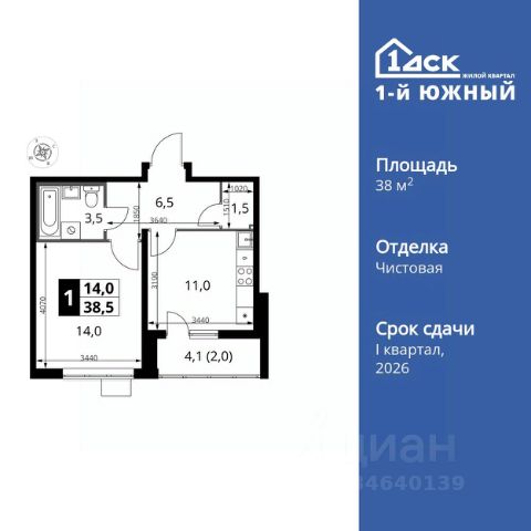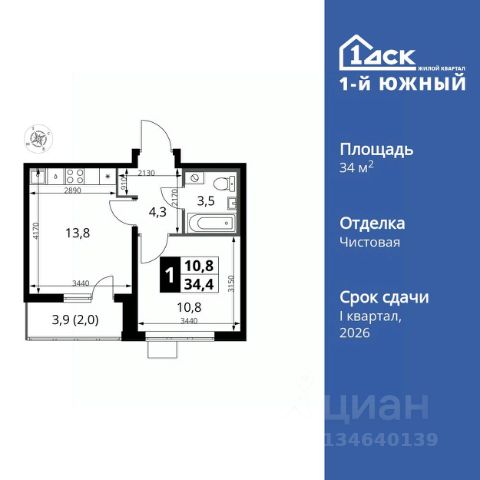 • ✓ В базе Циан 96 1-комнатных квартир с отделкой от застройщика рядом с метро Битца
