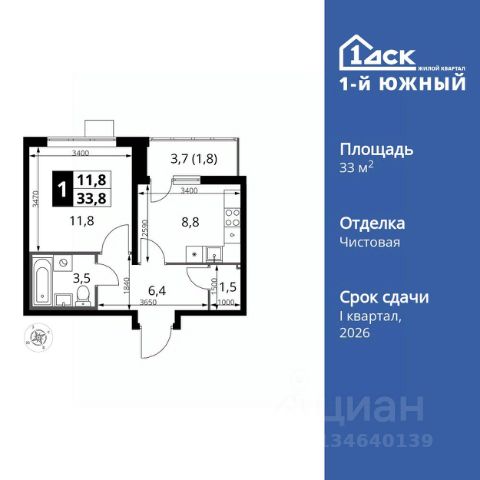 Продаётся 1-комн. квартира площадью 32,8 кв.м на 14 этаже 24 этажного дома (Корпус 3.5, Секция 2) проекта ПИК Кавказский бульвар 51. Светлый просторный подъезд на уровне земли, функциональная планировка, большие окна, предчистовая отделка. "Кавказский бульвар 51" — современный жилой квартал в районе Царицыно. Проект частично реализован. "Кавказский бульвар 51" находится в районе Царицыно, недалеко от одноимённого музея-заповедника. До метро "Кантемировская" — 17 минут пешком. За 20 можно дойти до станции "Чертаново". В 10 минутах на машине — МКАД, в 11 минутах — Варшавское шоссе, а в 16 минутах — ТТК. В проекте жилые дома высотой от 5 до 33 этажей, детский сад и школа. На первых этажах доступны магазины, кафе, салоны красоты и другие сервисы — чтобы купить кофе и свежий хлеб к завтраку, можно просто спуститься на лифте. В уютных дворах-парках есть места для отдыха и детские площадки. Для прогулок на свежем воздухе мы построим для жителей широкий пешеходный бульвар. В районе вокруг "Кавказского бульвара 51" есть всё для комфортной жизни: детские сады, школы, поликлиники, магазины и торговые центры. Девять минут на машине — и вы у музея-заповедника "Царицыно", где можно гулять среди исторических построек, лежать на траве под тенью деревьев или заниматься спортом на специальных площадках. Есть парки и поближе: до Аршиновского можно дойти за 8 минут, а до парка "Сосенки" — за 13 минут. Артикул 998641 (Застройщик АО "СПЕЦИАЛИЗИРОВАННЫЙ ЗАСТРОЙЩИК "ТОРГОВЫЙ ДОМ СПУТНИК") Продам 1-комнатную квартиру с отделкой от застройщика рядом с метро Царицыно.
