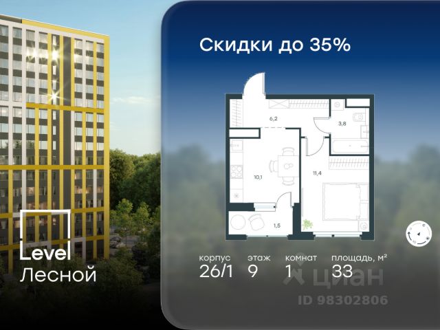 Новостройка! Продается 1-комн. кв-ра площадью 33,06 кв.м, (Корпус 3.4, Секция 4) 11 этаж 32-этажного дома в Квартал Мит от ПИК. "Квартал Мит" строится в экологически чистом районе Митино, где по соседству расположен большой лесопарк, а с двух сторон протекают реки Сходня и Журавка. Для семей с детьми здесь появится школа и два детских сада. В 20 минутах пешком находится станция метро "Пятницкое шоссе", а за 10 минут на автомобиле можно доехать до МКАД. Архитектура от бюро Slava+ Концепция квартала сочетает эстетику и функциональность. Башня-доминанта цвета красной охры и разновысотные корпуса терракотового, белого и графитового оттенков формируют узнаваемый силуэт современного городского пространства. Просторные террасы, разнообразные балконы и окна в пол придают облику динамичность и дарят квартирам уютные места для отдыха. Первые этажи с панорамными окнами создают сцену для яркой городской жизни. Здесь появятся пространства для прогулок, летние террасы, рестораны и коммерческие помещения. Комфорт "Серии плюс" При входе в дом жителей встретят светлые просторные лобби с высокими потолками — попасть сюда можно как со стороны улицы, так и со двора. В лобби будет зона ожидания, велосипедная и колясочная. Быстро и с комфортом подняться на нужный этаж помогут бесшумные скоростные лифты. На подземном этаже появится паркинг и индивидуальные кладовые, где удобно хранить сезонные вещи. #d17.11# Артикул 1034760 (Застройщик АО СЗ "ПФК") Купить 1-комнатную квартиру с отделкой рядом с метро Митино.