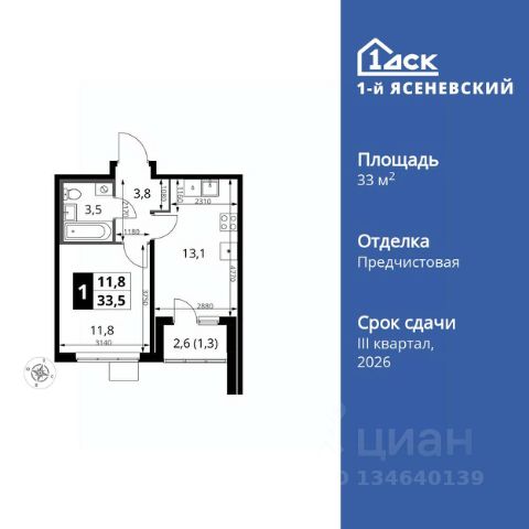 Прямая продажа от застройщика! Жилой Комплекс класса Комфорт Плюс. Продаётся 1-к квартира номер 531 общей площадью 34.8 кв.м. на 12-м этаже 18 этажного дома. Отделка Whitebox. Особенности квартиры: - Квартиры рядом с метро - м. Корниловская 9 мин пешком - 63 га лесопарка за окнами - Школа c it-кластером и бассейном. 2 детских сада - Мастер-зона с гардеробной. Просторное место для отдыха и удобного хранения вещей. - Линейная планировка - максимальная функциональность и удобство. - Гардеробная - удобство для хранения и организации вещей. - Ниша под шкаф - компактное и удобное место для вещей. - Лоджия - уютное место для отдыха и тишины. Квартира с предчистовой отделкой (White box). Вам не придется заниматься черновыми и трудоёмкими работы, а чистовую отделку и дизайн - сделайте на свой вкус. Информация о комплексе: В жилом комплексе комфорт-плюс класса "1-го Ясеневского" доступны преимущества двух стилей жизни. Ведь в пешей доступности метро, школа с 25-метровым бассейном и IT-кластером и при этом целых 63 га благоустроенного Троицкого лесопарка под окнами, где так приятно дышать свежим воздухом и слушать пение птиц. Собственная закрытая территория "1-го Ясеневского" представляет собой уютный оазис. Здесь и зеленый освещенный бульвар для прогулок, система велодорожек, маленькая городская площадь, кафе, пекарни и кофе поинты. А еще дворы без машин и многоэтажная парковка. Изюминка территории - фруктовые деревья во дворах и городские сады. "1-й Ясеневский" - всего в 1 км от МКАД, на территории новой Москвы. Жилой комплекс, где есть все необходимое для современного человека. Транспортная доступность: До метро "Корниловская" - 12 минут пешком До метро "Тютчевская" - 25 минут пешком До метро "Теплый стан" - 10 минут на транспорте До метро "Ольховая" - 30 минут на общественном транспорте Личный автотранспорт: Выезд на Калужское шоссе - 500 м МКАД - 1 км Внутренняя инфраструктура: ЖК "1-й Ясеневский" можно назвать идеальным местом для жизни семьи с детьми. Здесь буквально за домом находится Троицкий лесопарк - излюбленное место прогулок молодых родителей. А во внутренних дворах под детские площадки выделены специальные зоны. Они оборудованы всем, что нужно для счастливого детства: современными и максимально безопасными качелями, песочницами и лазалками. Оборудование и игровые сценарии на детских площадках спроектированы вместе с командой детских психологов для правильного развития ребенка и для повышения их интереса. Также рядом с домом два детских садика, один из которых уже построен и школа на 1100 мест. Школу по праву можно назвать образцовым учебным заведением. В ней закладываются основы успешного будущего. Здесь есть класс робототехники, IT-кластер, 25-метровый бассейн и прекрасно оборудованные спортзалы. Продается 1-комнатная квартира от застройщика рядом с метро Теплый Стан.