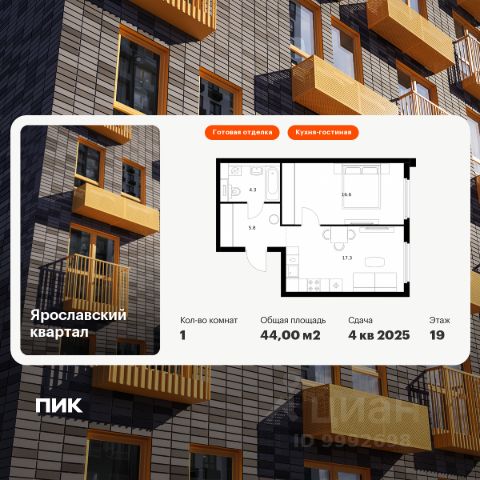 Продаётся 1-комн. квартира площадью 32,3 кв.м на 22 этаже 25 этажного дома (Корпус 2.2, Секция 1) проекта ПИК Ярославский квартал. Светлый просторный подъезд на уровне земли, функциональная планировка, большие окна, c отделкой. Проект "Ярославский квартал" возводится в Мытищах, в 6 км от МКАД. Жилой квартал, состоящий из 8 корпусов, строится рядом с Ярославским шоссе и имеет удобный заезд с крупной автомагистрали. На территории проекта появится школа, детский сад и пешеходный бульвар. Индивидуальные дизайны фасадов для "Ярославского квартала" разработало петербургское архитектурное бюро RHIZOME. В их портфолио вошли работы для Московского музея современного искусства, ГЦСИ, Манифеста 10 и ЦВЗ Манеж. За 7 минут можно дойти пешком до ближайшей автобусной остановки. Столько же займёт дорога до "Лосиного острова" - облагороженного парка с разными активностями для всей семьи, благоустроенными зонами для отдыха, местами для прогулок и пробежек на свежем воздухе. Доехать на автомобиле до Ярославского шоссе получится за 3 минуты, до станции "Мытищи" - за 9 минут, до МКАД - за 15 минут. Артикул 1013298 (Застройщик ООО "Специализированный "ГЕОПАРК") Продам 1-комнатную квартиру с отделкой от застройщика рядом с метро ВДНХ.