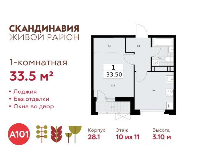 1-комнатная квартира площадью 33.70 в ЖК "А101 Лаголово" c лоджией на 12 этаже. Квартира с отделкой. Вид из окна на улицу. В квартире 1 санузел. Высота потолков 2.95 м. ОТДЕЛКА Для квартир с чистовой отделкой предлагается три варианта дизайна: Классика, Карелия светлая и Карелия темная. Варианты всех дизайнерских решений представлены на фотографиях. Подробности можно уточнить у менеджера. На все отделочные работы от застройщика предоставляется гарантия. ОСОБЕННОСТИ ПЛАНИРОВКИ Глубокая лоджия от 1,4м позволяет организовать отдельный кабинет, мастерскую или зимний сад с лаундж-зоной. ПАРАДНАЯ В каждой парадной предусмотрены места для хранения велосипедов и колясок, гостевой санузел, лапамойка (место для мытья домашних животных или колес велосипедов) и удобная зона ожидания для гостей. ДВОРЫ И ОКРУЖЕНИЕ Просторные дворы свободны от машин и закрыты от посторонних. Большую часть комплекса займут благоустроенные зелёные зоны, теневые сады и городские общественные пространства с развитой тротуарной сетью и велодорожками. Каждый дом оборудован системами видеонаблюдения и контроля доступа. "А101 Лаголово" - современный город у подножия знаменитых Дудерговских высот, в объятиях чистейших озёр и зелёных живописных массивов, наполненный всем необходимым для счастливой жизни. ИНФРАСТРУКТУРА. Мы занимаемся комплексным освоением территории. Наш приоритет - доступность всех сервисов для счастливой жизни. 1. Лаголово-город 15-ти минутной доступности. Вся необходимая инфраструктура: магазины, салоны красоты, образовательные учреждения, медицинские центры находятся в 15-ти минутах пешей прогулки от любой точки жилого комплекса. Это позволяет не тратить время на долгие перемещения. 2. Представьте идеальный город, где ребенок может спокойно играть, а пожилой человек наслаждаться заслуженным отдыхом. Жилая среда нашего комплекса может комфортно использоваться как 8-летним ребенком, так и 80-летним пожилым человеком. Дома, улицы, общественные пространства, тротуары спроектированы с заботой о людях разных возрастов. 3. Мы активно развиваем авторскую образовательную экосистему "Лёрнити". Она включает строительство 8 современных детских садов (2000 мест) и 3 школ (2945 учащихся). Мы учим родителей гармонично общаться с детьми, помогаем малышам подготовиться к школе, а подросткам - выбрать будущую профессию и развить таланты. Не хватает средств на покупку кладового помещения? Оформите ипотеку на квартиру и добавьте к ней часть стоимости кладовой. ЗАСТРОЙЩИК ГК "А101" - крупный инвестиционно-строительный холдинг, занимает 6-е место по объему строительства в России (по данным "Единого ресурса застройщиков" на 2023 год). НКР присвоило ГК "А101" кредитный рейтинг A+.ru, подтверждая его надежность и финансовую устойчивость для завершения строительства ЖК.