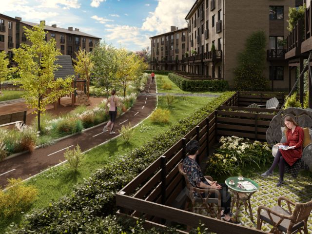 Для активных и спортивных жителей будет предусмотрена специальная дорожка для пробежек по периметру комплекса.