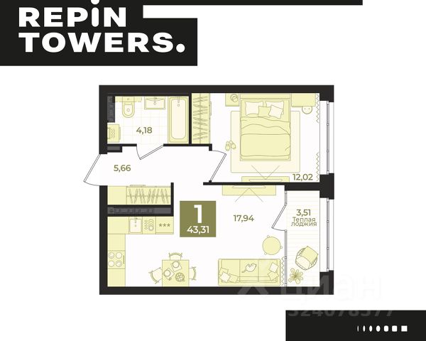Дом 3 Ввод в эксплуатацию первая половина 2026 г. (возможен досрочный ввод). Класс дома: комфорт. Отделка: чистовая. Архитектурное решение: строгий фасад дома выполнен в глубоком синем цвете и дополнен выразительным элементом, напоминающим огромную линзу. Объем здания также формируют навесные балконы. В квартирах с такими балконами предусмотрены еще и теплые лоджии. Вид из окон: на городскую застройку, двор, школу и детский сад. ЖК Repin Towers три башни разной этажности объединённые общим двором. Комплекс расположен на пересечение улиц Репина Заводская. На территории запроектирован детский сад, до школы около 100 метров, пересекать проезжую часть не придется. В шаговой доступности находятся: школы ( 41, 57, 168, 121, Гимназия 202 "Менталитет") детские сады (7, 67, 348, 510) остановки общественного транспорта (ул. Репина, Начдива Васильева, Металлургов) торговые центры (Мега, Радуга-парк) парк отдыха Радуга набережная Верх-Исетского пруда с яхт-клубом "Коматек" Современная архитектура. Минимализм и круглые окна — особенность, выделяющая дом среди окружающей застройки. Двор без машин. Игровые площадки для детей разных возрастов, места отдыха и занятий спортом для взрослых не соседствуют с парковкой. Релакс-зона. Шезлонги и зонтики, поворотные кресла и паровой камин для спокойного отдыха. Парк во дворе. Многоуровневое озеленение и система туманообразования. 3 уровня безопасности. Контроль доступа по карте жителя, эффективная система видеонаблюдения, консьерж-сервис. Дизайнерские холлы. Парадный холл с остеклением в пол, гостевым санузлом и зонами ожидания. Технический холл. Для разгрузки строительных материалов, мебели и крупногабаритных вещей предусмотрен отдельный технический холл. В нем расположен грузовой лифт и санузел для мытья лап животным, а также колес велосипедов и колясок. Сервисная компания от застройщика. Обслуживанием дома будет заниматься профессиональная команда. Строительные и технические преимущества. Индивидуальный тепловой пункт: снижает затраты на отопление. Система очистки улучшит качество воды в доме. Пятикамерные окна задержат шумы и холод. Клапан вентиляции позволит проветрить комнату, не устраивая сквозняк. Горизонтальная разводка отопления: трубы спрятаны в полу. Счетчики с телеметрией. Отдельный счетчик на отопление у каждой квартиры. Отведение конденсата для кондиционеров. Высокий уровень шумоизоляции у стены квартир. Бесшумные, скоростные лифты. Реализация строящегося объекта осуществляется от застройщика по договору участия в долевом строительстве в соответствии с ФЗ-214 "Об участии в долевом строительстве", застройщик ООО "Специализированный Застройщик Репина". Варианты оплаты: ипотека, индивидуальные условия рассрочки, trade in, материнский и жилищные сертификаты, подробности в отделе продаж.