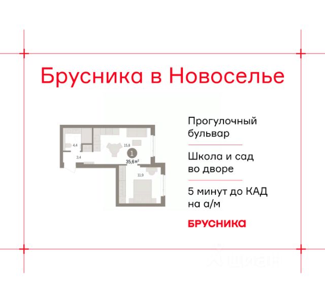 1-комн. квартира от застройщика с предчистовой отделкой в ЖК "Брусника в Новоселье" на 6 этаже. Общая площадь: 39.8 кв.м., жилая: 11.9 кв.м., площадь просторной кухни-столовой: 15.8 кв.м. Все окна выходят на одну сторону. В квартире одна лоджия, один совмещенный санузел. Высота потолков 2.7 м. Дом монолитный, многоподъездный, переменной этажности, от 8 до 9 этажей. Квартира находится во 2-й секции высотой 8 этажей в корпусе 2. На этаже 8 квартир. В подъезде 1 грузовой лифт. Окончание строительства - 4 квартал 2027 года. Оформление сделки по договору долевого участия. Новоселье — это городской поселок в Ломоносовском районе Ленинградской области. Он расположен в 5 км к югу от Финского залива, на самой границе региона. Вдоль поселка проходит Кольцевая автомобильная дорога, а сразу за ней начинается Санкт-Петербург — Красносельский район и Стрельна. Район зелёный и тихий, с разных сторон его окружают Шунгеровский заказник, Гореловский лес и дачные поселки. Есть вся необходимая инфраструктура: уже построенные детские сады, школы, клиники, торговые центры, ледовая арена. Так Новоселье сочетает в себе все преимущества городского комфорта и размеренной жизни рядом с природой. До выезда на КАД 5 минут, до ст. м. Ленинский проспект - 25 минут на а/м, до аэропорта Пулково - 30 минут на а/м. Брусника построит в Новоселье семь домов, в том числе башни и дома с разноуровневыми секциями. Высота зданий — от 8 до 12 этажей. Проект разделен на три очереди, на первом этапе мы возведём три дома в западной части квартала. В основе архитектурной концепции "Брусники в Новоселье" лежит лаконичность силуэтов и внимание к деталям. Мы разработали три фасадные темы, в основе которых лежит один прием — вертикальные и горизонтальные членения, реализованные за счет остекления балконов и лоджий, переменной этажности и цветового дробления фасадов. Выразительность последних достигается за счёт симметрии и использования декоративных элементов — карнизов и рамок вокруг окон. Входные группы мы заглубим относительно основной линии фасада, чтобы подчеркнуть входы в ритейл и места общего пользования. Материалы отделки будут приближены к натуральным. Первые этажи домов мы облицуем плиткой, имитирующей клинкерный кирпич. Кроме того, в проекте много террас, и все они разные: на первых этажах, на последних, угловые, с прямым фронтоном. Они расширяют пространство квартир и связывают их с природным контекстом. #zMEVMT