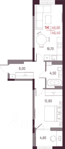 Продаётся 1-комнатная квартира в сданном доме (Литер 2.8), срок сдачи: IV-кв. 2024, общей площадью 31.2 кв.м., на 4 этаже. Расположение, транспортная доступность