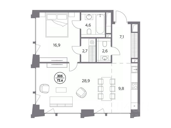 В динамично развивающемся районе Москвы, всего в 300 метрах от метро и в пешей близости от нового городского порта с протяженной набережной 13 км, свободной от автомобилей, продается 1-комнатная квартира площадью 35.10 м². без отделки. Квартира находится в корпусе жилого комплекса бизнес-класса "Адмирал", расположенного по адресу г. Москва, ул. Шоссейная, 4Д. (Застройщик - "Галс Девелопмент"). Новый амбициозный проект "Адмирал" станет частью одного из самых перспективных районов будущего - "Сити-2". В пешей доступности от современных башен Вас ждут живописные Люблинские пруды, 2 усадьбы с уникальной историей и уютный парк "Печатники" у Перервинского плёса. Район имеет отличную транспортную доступность: • 300 метров до станции метро "Печатники"; • Удобная пересадка на БКЛ и станцию МЦД-2; • 10 минут на машине до ТТК; • 15 минут до Садового кольца. Архитектура корпусов отличается динамичностью облика благодаря переменной этажности: высокие башни сочетаются с домами средней этажности. Изящным украшением становятся арочные витражи. Интеллигентный и современный стиль "Адмирала" продолжается в гранд-лобби: пастельные оттенки интерьера и фактурные элементы декора создают атмосферу безмятежного отдыха, особое ощущение простора дарят высокие потолки до 4 м и витражные окна. В домах предусмотрено от трех до шести скоростных лифтов, каждый из них спускается на любой этаж подземного паркинга и обладает удобными сенсорными панелями управления и низким уровнем шума. Благоустроенный двор площадью 5000 кв.м. украсят десятки видов гипоаллергенных растений. Здесь можно совершить приятный променад, по пути заглядывая за свежезаваренным кофе, уединиться за ноутбуком в комфортном коворкинге, занять ребенка играми в двухъярусном плейхабе или помедитировать на специальной площадке для йоги. Мягкий свет декоративных фонарей подчеркнет живописность местности, а чувство безопасности гарантируют круглосуточные системы видеонаблюдения. Дополнительные преимущества: • Высокие потолки от 2,9 до 3,25 м; • Бизнес-центр, школа и детский сад прямо на территории дома; • Подземный двухуровневый паркинг на 1955 машино-мест; • Кладовые помещения в тёплом контуре на 2м этаже; • Стрит-ритейл на первых этажах. Продается 1-комнатная квартира от застройщика Галс-Девелопмент в Москве.