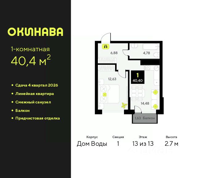 Продается 1-комн. квартира с предчистовой отделкой в ЖК "Окинава" на 3 этаже. Общая площадь: 47.32 кв.м., жилая: 14.34 кв.м., площадь просторной кухни-столовой: 16.49 кв.м. Угловая квартира, идеально подойдет любителям тишины и панорамных видов. В квартире одна лоджия, один совмещенный санузел. Высота потолков 2.7 м. Квартира будет сдана с предчистовой отделкой: на полах стяжка под финишное покрытие, стены подготовлены под покраску или оклейку обоями, разведена вся электрика с подготовкой для установки выключателей и освещения. При желании вы можете заказать отделку под ключ, варианты возможных решений представлены в альбоме фотографий. Дом монолитный, многоподъездный, переменной этажности, от 13 до 19 этажей. Квартира находится в 7-й секции высотой 17 этажей в корпусе Дом Огня. На этаже 8 квартир. В подъезде 1 пассажирский и 1 грузовой лифт. Окончание строительства - 3 квартал 2027 года. Оформление сделки по договору долевого участия. ЖК "Окинава" это не просто жилой комплекс, это остров 4 стихий. Они отражаются во внешнем виде фасадов домов, обустройстве дворов и внутреннем оформлении холлов. Каждая из стихий это отдельный дом. Между домами раскинется большой двухуровневый пешеходный бульвар. Первый уровень прогулочный с местами для отдыха, амфитеатром и фонтанами. На втором уровне расположатся площадки для детей, спортивных игр и тренировок. Квартал будет располагать богатой инфраструктурой: на первых этажах разместятся магазины, пекарни, кофейни, пункты выдачи, аптеки, детские центры, цветочные салоны и многое другое, что сделает жизнь поистине комфортной. В жилом комплексе есть кладовые, а также несколько видов паркинга: уличный гостевой, закрытый теплый и паркинг в стилобате, попасть в который можно на лифте с любого жилого этажа. Дворы в каждом доме отражают его стихию, отличаясь по наполнению. Они дополняют друг друга, образуя единое дворовое пространство жилого комплекса. Закрытая территория, свободная от автомобилей, обеспечит безопасность и спокойный отдых. Холлы оформлены керамогранитом, зеркалами и разноуровневым освещением. Витражные входные группы, мягкие зоны ожидания, видеонаблюдение 24/7, вместительные колясочные и даже лапомойки для питомцев всё это будет в ЖК "Окинава". Жилой комплекс "Окинава" находится в активно развивающемся V заречном микрорайоне, недалеко от озера Алебашево, где в будущем расположится масштабный ивент-парк с зонами отдыха. Удобная транспортная развязка позволит добраться до центра всего за 15 минут. #2WeUIf