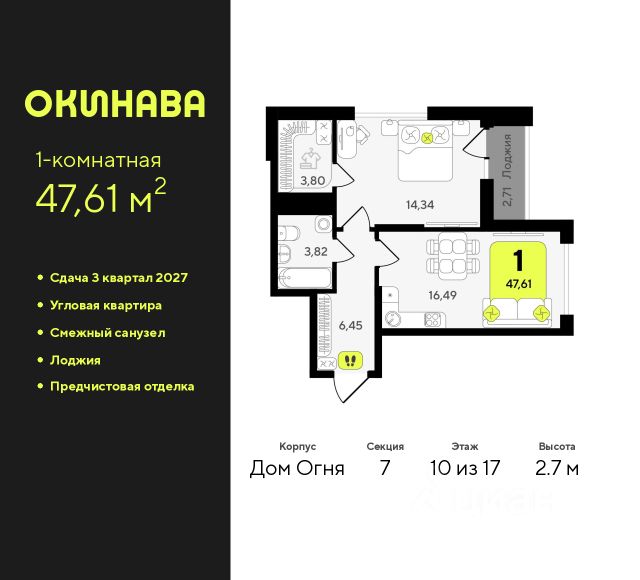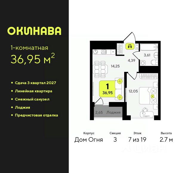 1-комн. квартира с предчистовой отделкой в ЖК "Дивный квартал у озера" на 7 этаже. Общая площадь: 38.82 кв.м., жилая: 14.48 кв.м., площадь просторной кухни-столовой: 11.41 кв.м. Все окна выходят на одну сторону. В квартире одна лоджия, один совмещенный санузел. Высота потолков 2.7 м. Квартира будет сдаваться с предчистовой отделкой White Box: выровнены и оштукатурены стены, проведено электричество и отопление, установлены радиаторы. Вы также можете приобрести квартиру с ремонтом от застройщика, представленным в трех цветовых решениях Scandi, Wood и Coffee и включающим: ламинат, обои под покраску, двери, натяжной потолок, санузел с сантехникой. При желании вы можете заказать отделку под ключ, варианты возможных решений представлены в альбоме фотографий. Дом монолитный, черырехподъездный, переменной этажности, от 7 до 9 этажей. Квартира находится в 1-й секции высотой 7 этажей в корпусе ГП-5. На этаже 9 квартир. В подъезде 1 грузовой лифт. Окончание строительства - 4 квартал 2025 года. Оформление сделки по договору долевого участия. "Дивный квартал у озера" современный жилой квартал, удобно расположенный в 10-ти минутах от центра Тюмени, в уютном районе рядом с зеленым массивом и озером Алебашево. Комплекс находится между улицами Мельникайте и Алебашевская, что обеспечивает его хорошую транспортную доступность до центра на автомобиле всего 10 минут. Рядом с комплексом расположен Лесопарк имени Гагарина, экзотический Парк дружбы между Россией и Республикой Корея. "Дивный квартал у озера" объединяет архитектуру современной городской застройки и природную эстетику. Уютные дворы жилого комплекса будут не только безопасными, но и тихими. Закрытая территория надёжно защищена от шума и посторонних глаз. Здесь будут места для отдыха, детские площадки, зоны для выгула собак. В холлах первого этажа расположены мягкая зона ожидания, общественные санузлы и просторная колясочная. Квартал будет располагать богатой инфраструктурой: на первых этажах домов разместятся магазины, пекарни, кофейни, пункты выдачи, аптеки, детские центры, цветочные салоны и многое другое, что сделает жизнь поистине комфортной. В комплексе есть теплый подземный паркинг и кладовые. #zwavDd