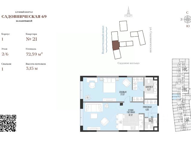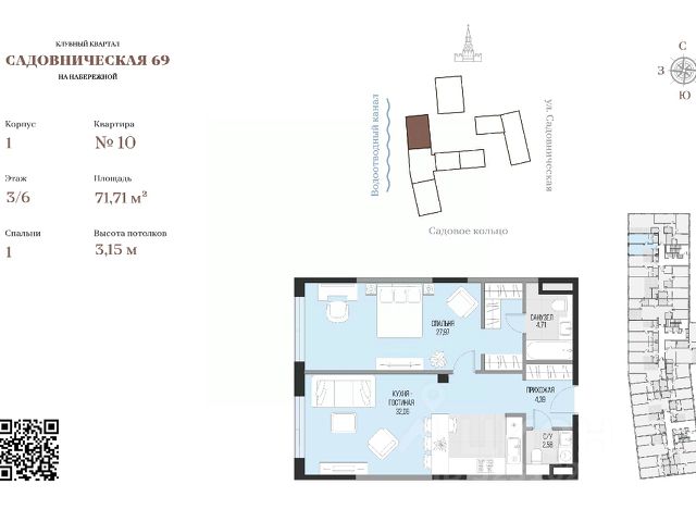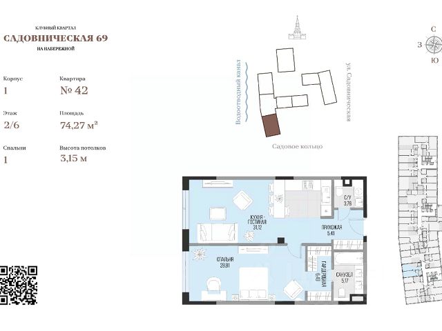 Просторная светлая квартира площадью 74,27 кв.м. Из окон квартиры открываются живописные виды на Москва-реку, старинные мосты и величественные башни Кремля. Витражное остекление выходит на тихую гладь реки или внутренний сад — такое решение обеспечивает максимум естественного света и красивые панорамы.