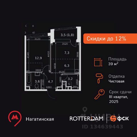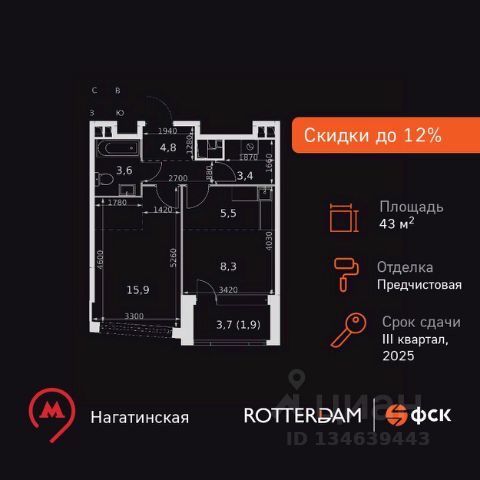 Прямая продажа от застройщика! Жилой Комплекс премиум-класса. Продаётся 1-к квартира номер 223 общей площадью 35.4 кв.м. на 2-м этаже 27 этажного дома. Без отделки. Цена с учётом скидки! Особенности квартиры: - Линейная планировка - максимальная функциональность и удобство. - Увеличенная высота окна - больше воздуха и света. - Постирочная - организуйте пространство для стирки и сушки вещей. - Можно оборудовать рабочее место - комфорт для работы и учёбы. - Ниша под шкаф - компактное и удобное место для вещей. - Тёплая лоджия - пространство для отдыха в любое время года. Информация о комплексе: Премиум-класс прямо на берегу Москвы-реки, с прямым выходом на набережную и потрясающими панорамными видами! На Шелепихинской набережной, расположен причал для речных трамваев. Вам станет доступна единственная столичная транспортная артерия, на которой никогда нет пробок: 20 минут до Москва-Сити, да еще и с вдохновляющими видами по пути. Входные группы домов - это индивидуальные дизайн-проекты, посвященные трем главным местам в жизни Лермонтова: Тарханам, Петербургу и Кавказу, которые объединяют сочетание эстетики и комфорта. Бурная жизнь соседей больше не сможет нарушить ваш покой, а к вам никто не постучит, если вы захотите прибавить громкость в любимом музыкальном треке или Ваши дети захотят устроить ночную пробежку! Живите только по своим правилам. В каждой квартире подключен базовый пакет Умная квартира забудьте о беспокойстве о протечке; настройте свои сценарии управления техникой и электричеством; общайтесь с Умной квартирой голосом; Можете легко расширить базовый пакет и подключить дополнительные опции и устройства, чтобы из любой точки мира управляй работой бытовых приборов и систем, например: включайте разогрев ужина; регулируйте яркость яркость света; регулируйте громкость музыки; настраивайте работу теплых полов; Транспортная доступность: В 50 м до новой станции метро "Звенигородская". Вторая улица от ЦАО и соседство с Москва-Сити. Все виды общественного транспорта, в том числе речные трамвайчики, в пешей доступности Внутренняя инфраструктура: Основная артерия жизни квартала - центральный бульвар. Вы с радостью обнаружите, что путь до престижных школ и вузов, развлечений и магазинов сжался до нескольких минут езды на машине. К вашим услугам: - муниципальные школы и ДОУ, музыкальные и спортивные школы, - 8 муниципальных ДОУ и 2 ДОУ с изучением английского языка - 5 медицинских учреждений - ТРЦ "Хорошо!" и "Авиапарк" - Сетевые фитнес-клубы World Class, X-Fit и др. - Горнолыжные склоны "Лата Трэк", ледовый дворец и гребной канал "Крылатское" и еще 7 природных парков