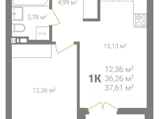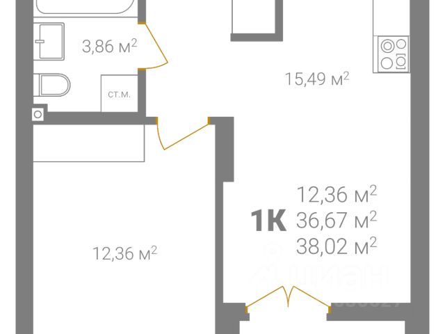 Продаётся 1-комнатная квартира в строящемся доме (50), срок сдачи: II-кв. 2026, общей площадью 38.7 кв.м., на 15 этаже. Расположение, транспортная доступность
