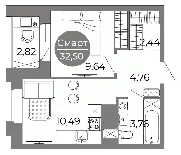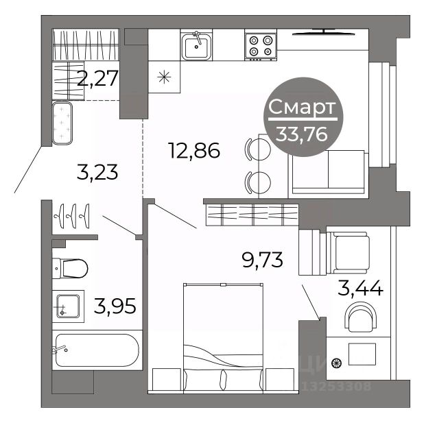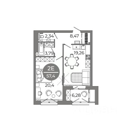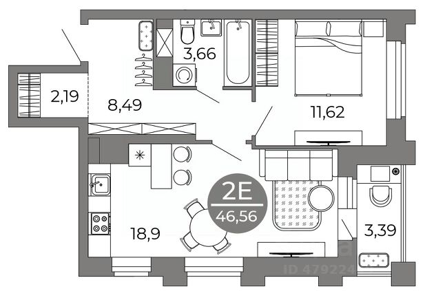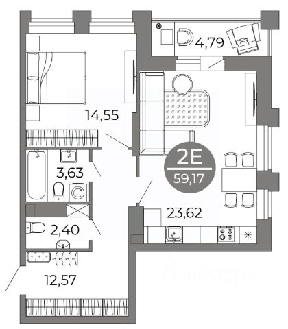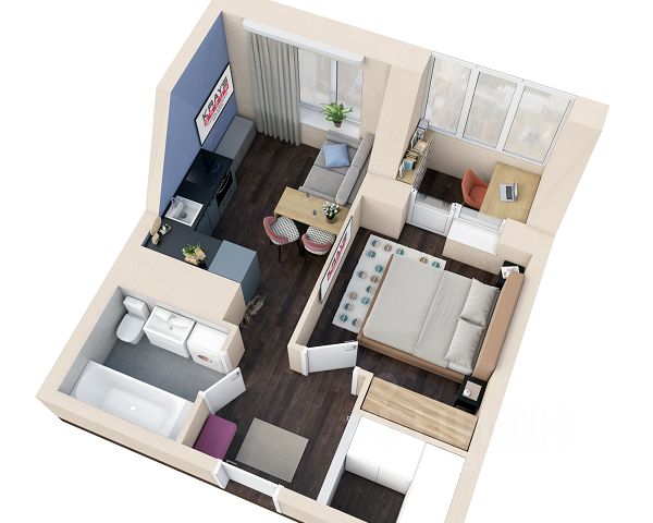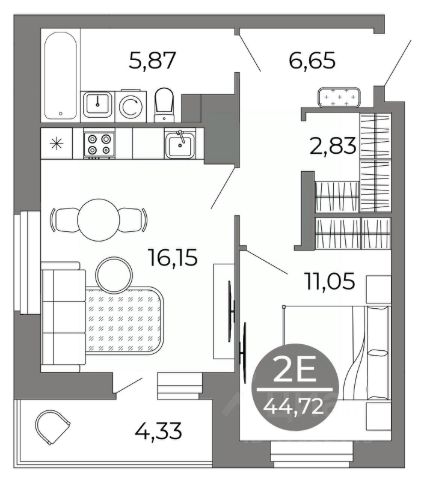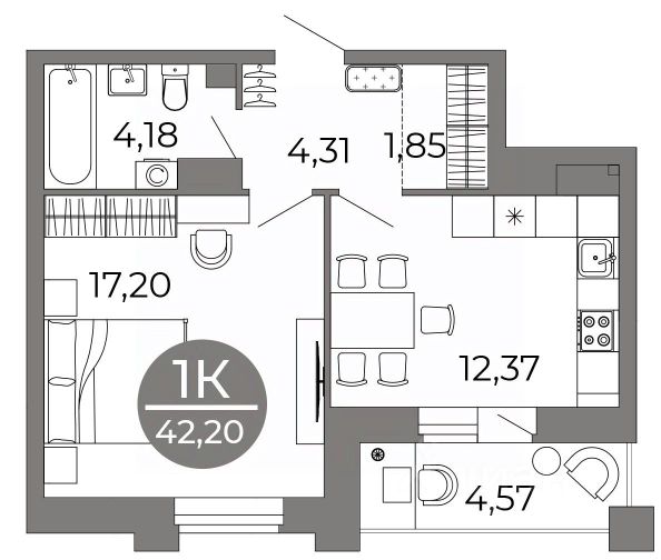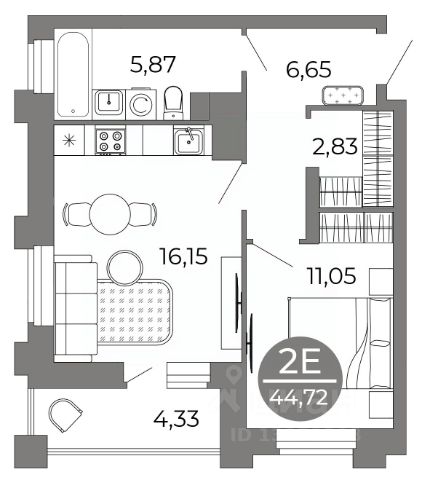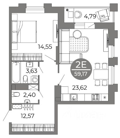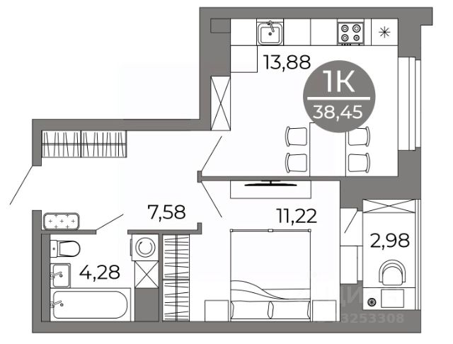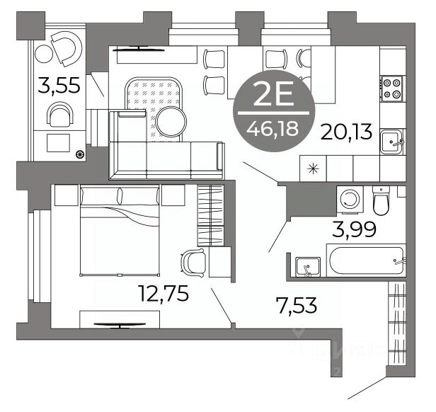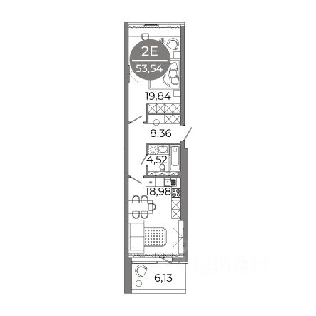 Квартира: 1 к 46,18 кв.м., 22 этаж в комплексе Галилей, 1 очередь, корп.3, сдача: 3кв. , этажей: 25, адрес Воронеж г., Кривошеина ул., д. 13/14, Застройщик: ГК Крайс.