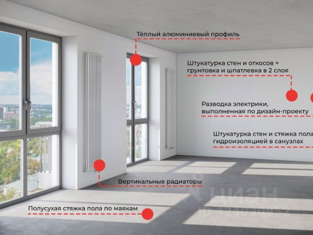 Квартиры в отделке White Box, что уже входит в стоимость. Ровная поверхность стен достигается шпатлевкой в 2 слоя. Стяжка и штукатурка в с/у. Эргономичная разводка электрики согласно дизайн-проекту.