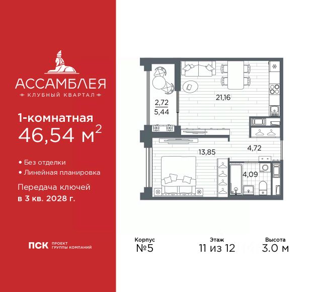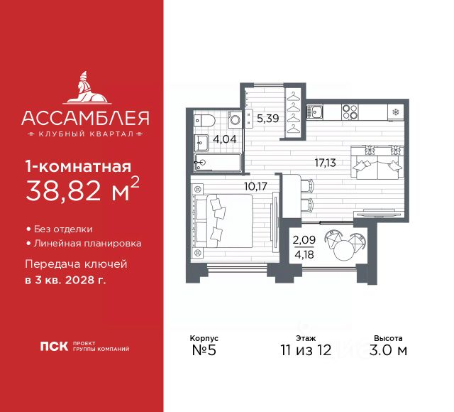 Просторная 1-комн. квартира в Клубный квартал "Ассамблея" на 11 этаже. Квартира без отделки, полностью готова к чистовой отделке и дальнейшему ремонту. Общая площадь: 35.95 кв.м., жилая: 10.37 кв.м., площадь просторной кухни-столовой: 15.68 кв.м. Все окна выходят на одну сторону. В квартире одна лоджия, один совмещенный санузел. Высота потолков 3.0 м. Дом монолитный, трехподъездный, высотой 12 этажей. Квартира находится во 2-й секции в корпусе 4. На этаже 7 квартир. В подъезде 1 пассажирский и 1 грузовой лифт. Начало строительства - 3 квартал 2025 года. Окончание строительства - 3 квартал 2028 года. Оформление сделки по договору долевого участия. В шаговой доступности от жилого комплекса имеются станции метро (расстояние по прямой): "Горный институт" (1.0 км), "Василеостровская" (1.4 км), "Приморская" (1.5 км), также недалеко от этого корпуса расположены станции метро: "Спортивная", "Чкаловская". "Клубный квартал Ассамблея" — проект бизнес-класса на Васильевском острове, в самом сердце исторического Петербурга. Комплекс состоит из пяти корпусов переменной этажности — от 7 до 12 этажей — с выразительной архитектурой в стиле неомодернизма: светлый клинкер, панорамное остекление, просторное лобби с потолками высотой почти 8 метров. Потолки — до 3,2 метров. Подземный паркинг на 667 машиномест. Комфорт и инфраструктура Проект ориентирован на комфортную городскую жизнь. В закрытом дворе — ландшафтное озеленение, современные детские и спортивные площадки. Внутренний клуб для резидентов включает коворкинг, переговорные, кинозал, фитнес и бьюти-зону. IP-домофония с просмотром камер видеонаблюдения, дистанционное открывание дверей и доступа на территорию и в парадную со смартфона и планшета, просмотр показаний счетчиков, приложение для жителей PSK Home. Локация Расположение на Васильевском острове — сильная сторона проекта. До четырех станций метро ("Горный институт", "Василеостровская", "Спортивная", "Приморская") — 515 минут пешком. В шаговой доступности — зелёные зоны, культурные учреждения, в том числе сад "Василеостровец" и ДК имени Кирова. Основные магистрали Большой, Средний и Малый проспекты, Наличная и Уральская улицы. Съезд на ЗСД расположен недалеко от станции метро "Приморская", близ береговой линии. Благовещенский и Дворцовый мосты соединяют остров с центром города, а мосты Тучков, Биржевой и Бетанкура — с Петроградской стороной. Застройщик Группа компаний ПСК является одной из ведущих девелоперских компаний Санкт Петербурга. На протяжении 18 лет она возводит в Северной столице качественное жилье премиум, бизнес и комфорт-класса, социальные объекты школы и детские сады, апарт-отели и торговые центры. Является шестикратным обладателем золотого знака "Надежный застройщик России". #Z6bsIf