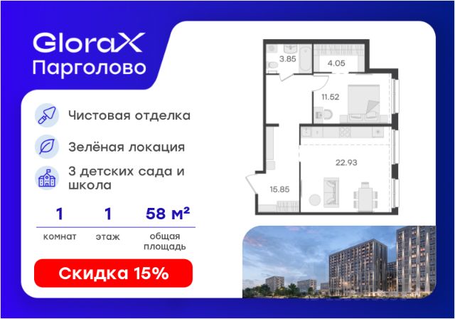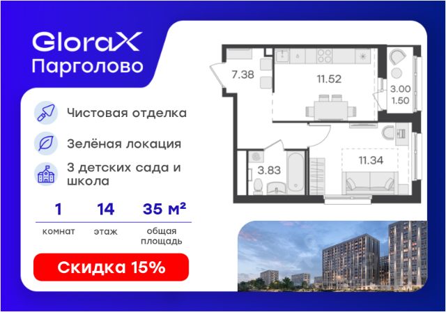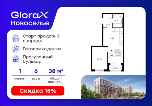 Продается 1-комн. апартамент на 5-м этаже в клубном доме премиум-класса GloraX Premium Белорусская. Общая площадь лота составляет 53,11 кв. м, из которых 15,78 кв. м отведено под жилую зону. Номер апартамента - 46. Цена лота указана с учетом НДС. Преимущества лота: кухня-гостиная с эркерным окном; ниша под зону кухни; гардеробная; спальня с двумя окнами. GloraX Premium Белорусская это клубный дом премиум-класса в историческом и деловом центре Москвы. Проект расположен всего в 5 минутах от Тверской улицы и 15 минутах от Кремля и Манежной площади. GloraX Premium Белорусская воплощает в себе лучшие традиции современной архитектурной мысли: оригинальная геометрия фасадов из натурального камня, эффектное сочетание в отделке клинкерного и глазурованного немецкого кирпича, контрастные металлические акценты. В клубном доме представлено всего 183 лота площадью от 31 до 145 квадратных метров, начиная от эргономичных студий до просторных трехкомнатных апартаментов и пентхаусов. Реализована увлеченная площадь остекления, эркерные окна, просторные кухни-гостиные, мастер-спальни, гардеробные и кабинеты. 60% апартаментов имеют завораживающие панорамные виды на яркие доминанты города: Москва-Сити, Останкинскую башню, здание МГУ на Воробьёвых горах, Дом Правительства, высотку на Краснопресненской набережной. Апартаменты сдаются без отделки и с предчистовой отделкой White Box. Резидентам GloraX Premium Белорусская доступна вся насыщенная жизнь центра, премиальный сервис и клубная инфраструктура дома с собственным фитнес-залом, лаунж-зоной с камином и винным шкафом. Благоустройство и интерьеры от бюро AEDAS с приватными зонами и собственным водопадом. Это премиальный проект, где используются современные технические решения, призванные создавать максимальный комфорт и обеспечивать резидентам комплексную безопасность. Заказ и управление всеми сервисами осуществляется через удобное мобильное приложение с интуитивно понятным интерфейсом, либо через сотрудников управляющей компании, которые помогут по вопросам проживания круглосуточно. Системы "Умный дом" и Умная квартира" обеспечивают согласованную работу всех инженерных систем, а также управляют электричеством, климатом, освещением и бытовыми приборами.