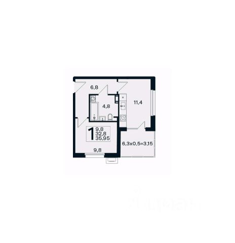 • ✅ Минимальная площадь: 35,1 м²