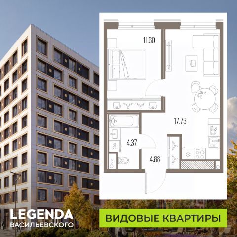 Однокомнатная квартира с предчистовой отделкой в ЖК "Северный Порт" на 12 этаже. Общая площадь: 47.9 кв.м., жилая: 11.5 кв.м., площадь просторной кухни-столовой: 21.5 кв.м. Все окна выходят на одну сторону. В квартире один совмещенный и один раздельный санузел. Высота потолков 3.15 м. Квартира находится в корпусе 7.1. Дом монолитный, одноподъездный, высотой 34 этажа. На этаже 14 квартир. В подъезде 3 пассажирских и 3 грузовых лифта. Окончание строительства - 1 квартал 2028 года. Оформление сделки по договору долевого участия. В шаговой доступности от дома расположены станции метро (расстояние по прямой): "Беломорская" (1.1 км), "Планерная" (1.5 км), "Речной вокзал" (1.6 км), также недалеко от этого корпуса находится станция метро "Ховрино". В проекте "Северный Порт" реализованы авторские решения девелопера LEGENDA, которые представлены уникальными фасадными решениями, коллекцией дизайнерских квартир, а также инновационным оснащением комплектацией TechnoBox - полностью технологически подготовленным пространством для любых современных сценариев жизни. В 1-ой очереди строительства проекта "Северный Порт" авторская комплектация TechnoBox представлена в корпусах 7.1 и 7.3 и включает в себя два направления: Технологически подготовленное пространство: - Smart Home Ready - стационарное и удаленное управление квартирой. - Air Design - всегда свежий воздух, никакого шума и пыли. - Мультизональное кондиционирование. - Мультисервисная сеть - единая сеть коммуникационных систем. Готовность к декорированию: - Шумоизоляция - комплексные меры для защиты от лишнего шума. - Подготовка стен - все стены подготовлены к отделке дизайнерскими материалами. - Выровненный пол - полы выровнены стяжкой из цементно-песчаной смеси, повышающей механическую прочность, и готовы к укладке покрытия. - Электрические сети - коммуникации расположены с учетом рекомендаций по расстановке мебели и техники. "Северный порт" от LEGENDA входит в крупномасштабный проект комплексного развития территории Северного речного порта, реализуемый правительством Москвы, и представляет собой микс жилой, коммерческой, социальной и общественной инфраструктуры. Автором концепции обустройства территории выступило архитектурное бюро Сергея Скуратова. Созданный дизайн-код лёг в основу проекта, разработанного LEGENDA совместно с архитектурным бюро KAMEN Architects. Город ставит новый акцент, создавая мощный центр притяжения в экологичной локации у Северного речного вокзала. Близость к воде, парковым зонам и футуристичный архитектурный образ определяют потенциал развития проекта на несколько десятилетий вперед. Важной частью проекта станет строительство самой протяженной благоустроенной набережной, которая соединится с парком Северного речного вокзала и создаст уникальное прогулочное пространство длиной 3,2 км, вдоль которого будет организован современный торговый променад. В основе концепции благоустройства лежит авторская модель проектирования дворов от LEGEN